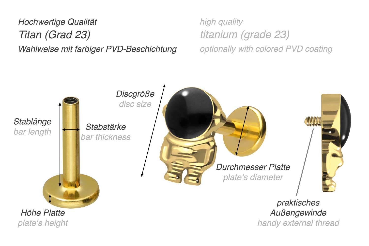 Titanium - Labret with internal Thread Astronaut