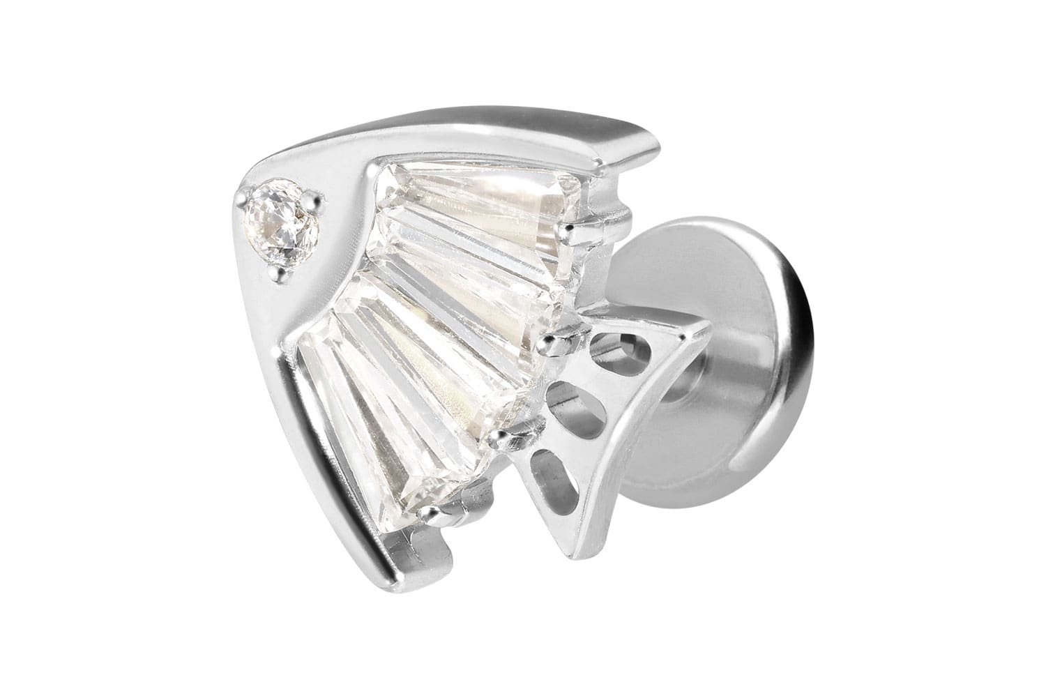is supplied with a timelessly beautiful screw-in attachment with external thread in form of a crystal fish, has a bar thickness of either 1.2