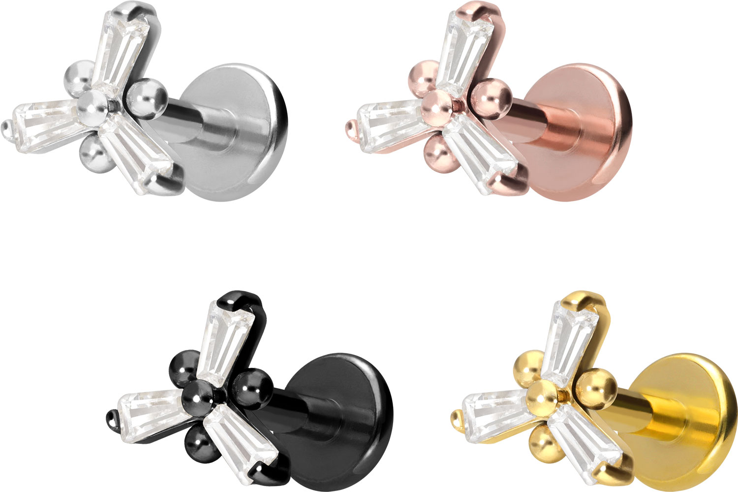 is supplied with a timelessly beautiful screw-in attachment with external thread in form of a crystal flower, has a bar thickness of either 1.2