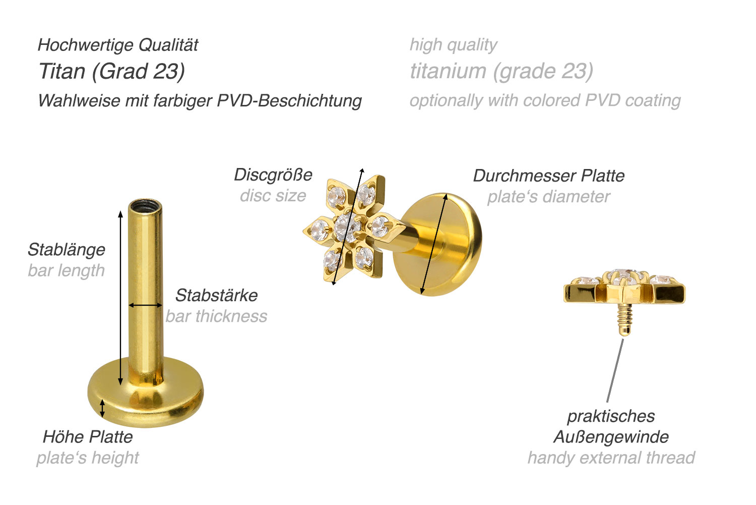 is supplied with a timelessly beautiful screw-in attachment with external thread in form of a crystal flower, has a bar thickness of either 1.2