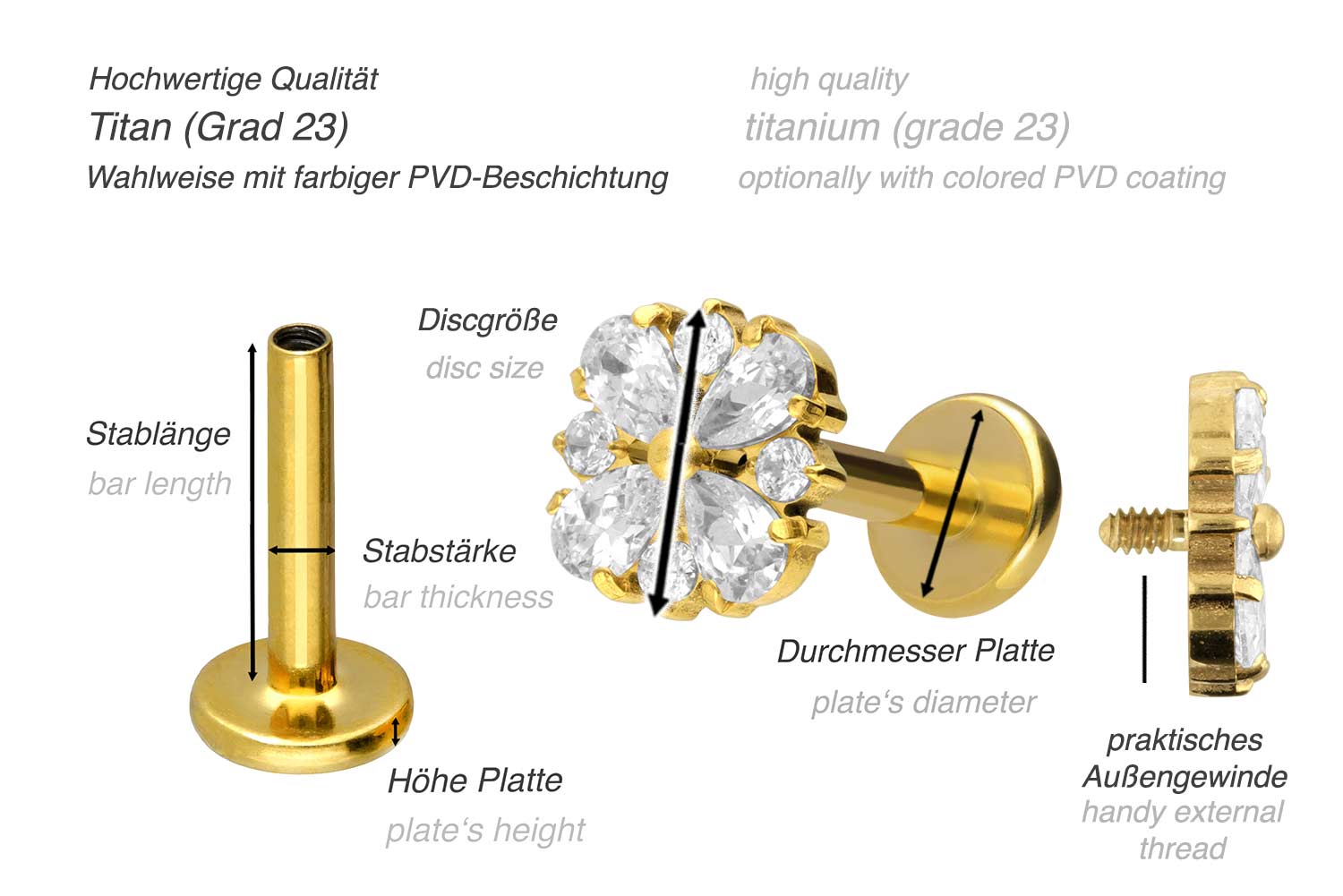 Titanium labret with internal thread CRYSTAL ORNAMENT