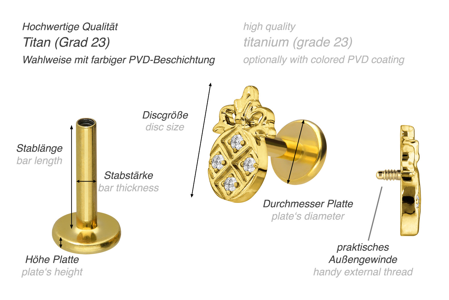 also guaranteed in the colored versions with PVD coating. The labret