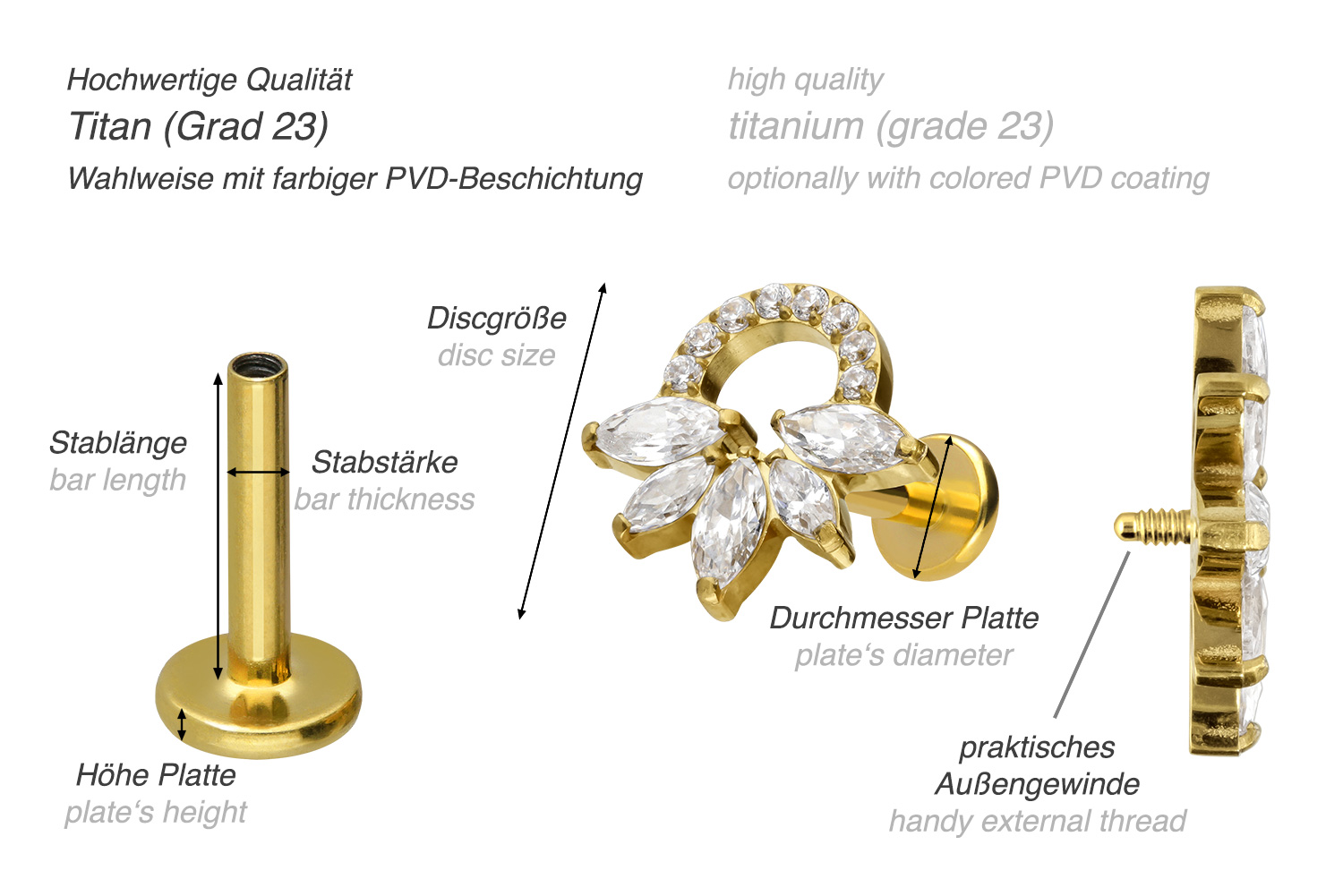 is supplied with a timelessly beautiful screw-in attachment with external thread in form of a crystal rattle, has a bar thickness of either 1.2