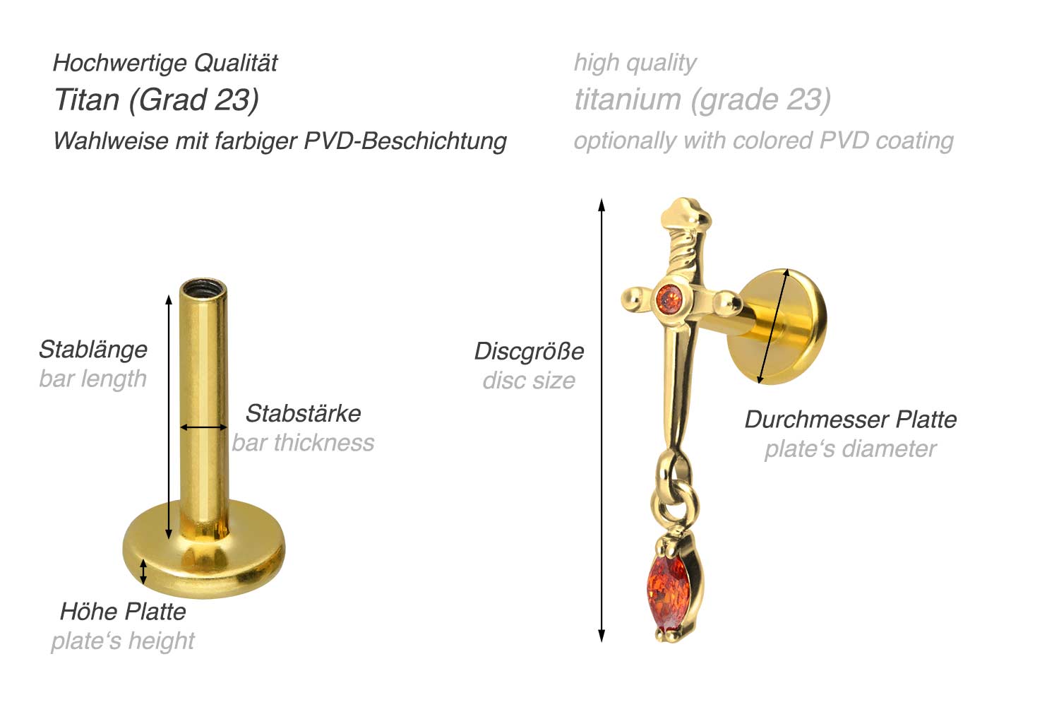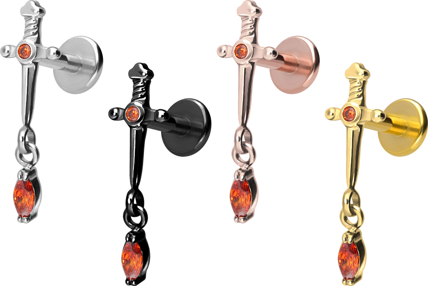 Titanium - Labret with internal Thread Dagger + Crystal Drop