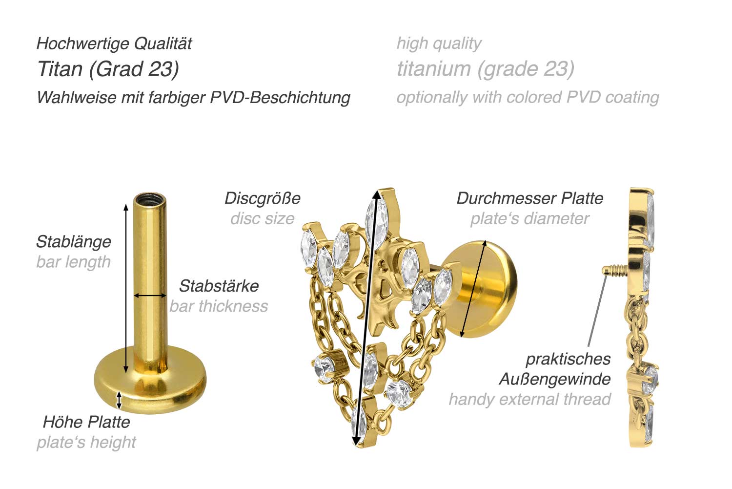 also guaranteed in the colored versions with PVD coating. The labret
