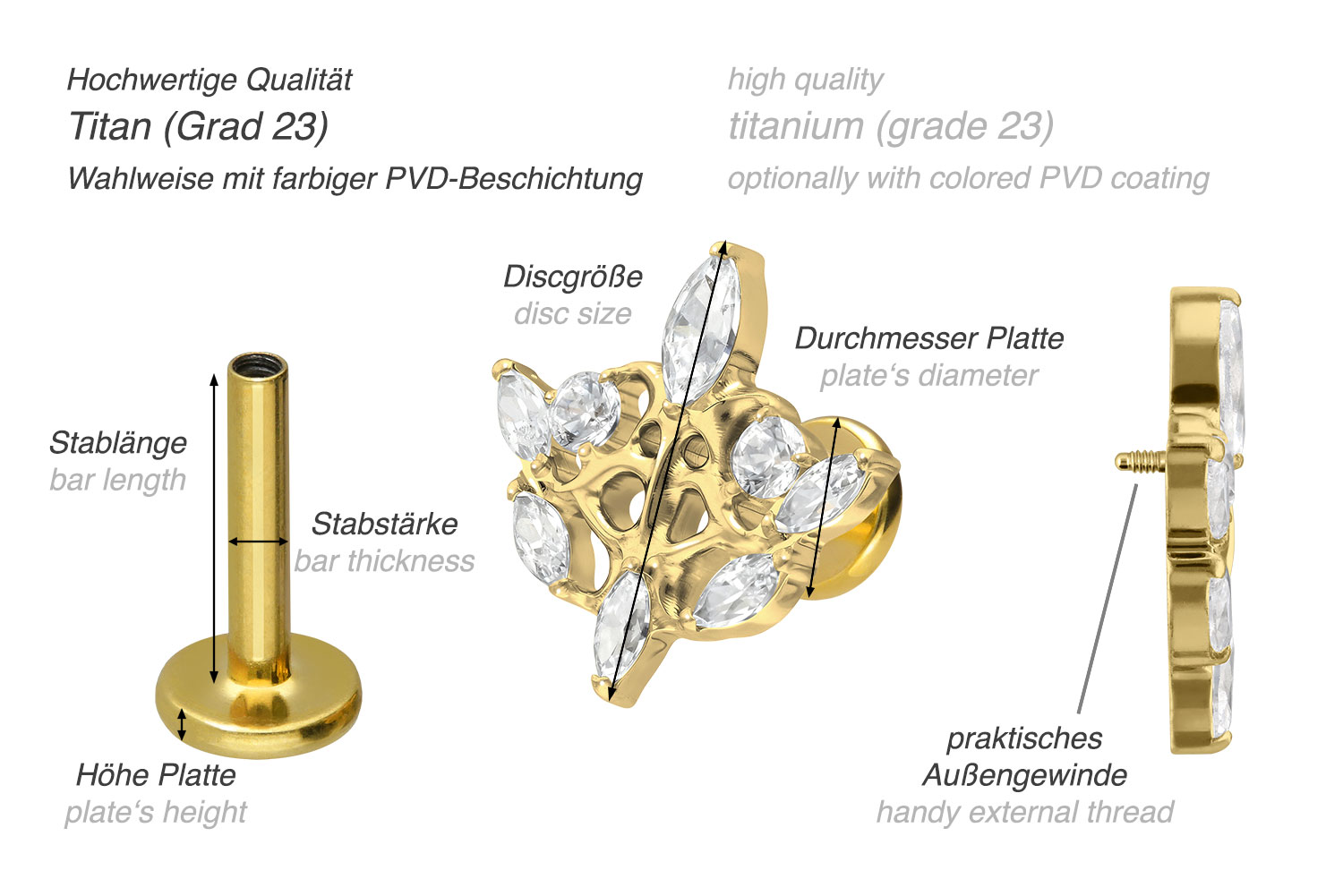 also guaranteed in the colored versions with PVD coating. The labret