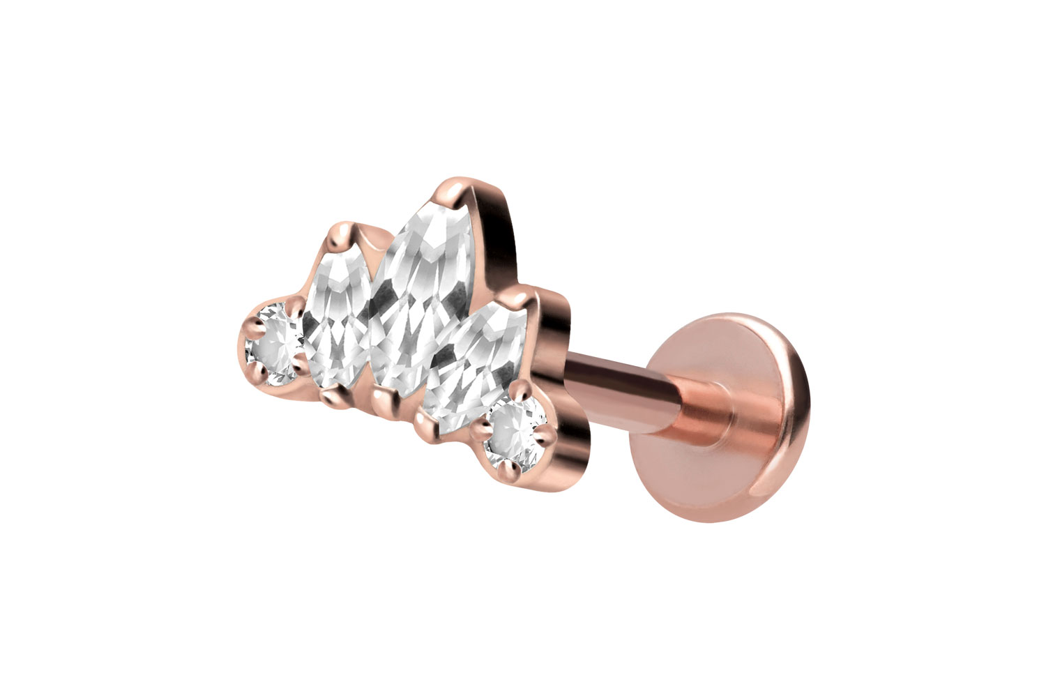 is supplied with a timelessly beautiful screw-in attachment with external thread in form of a sparkling lotus blossom, has a bar thickness of either 1.2