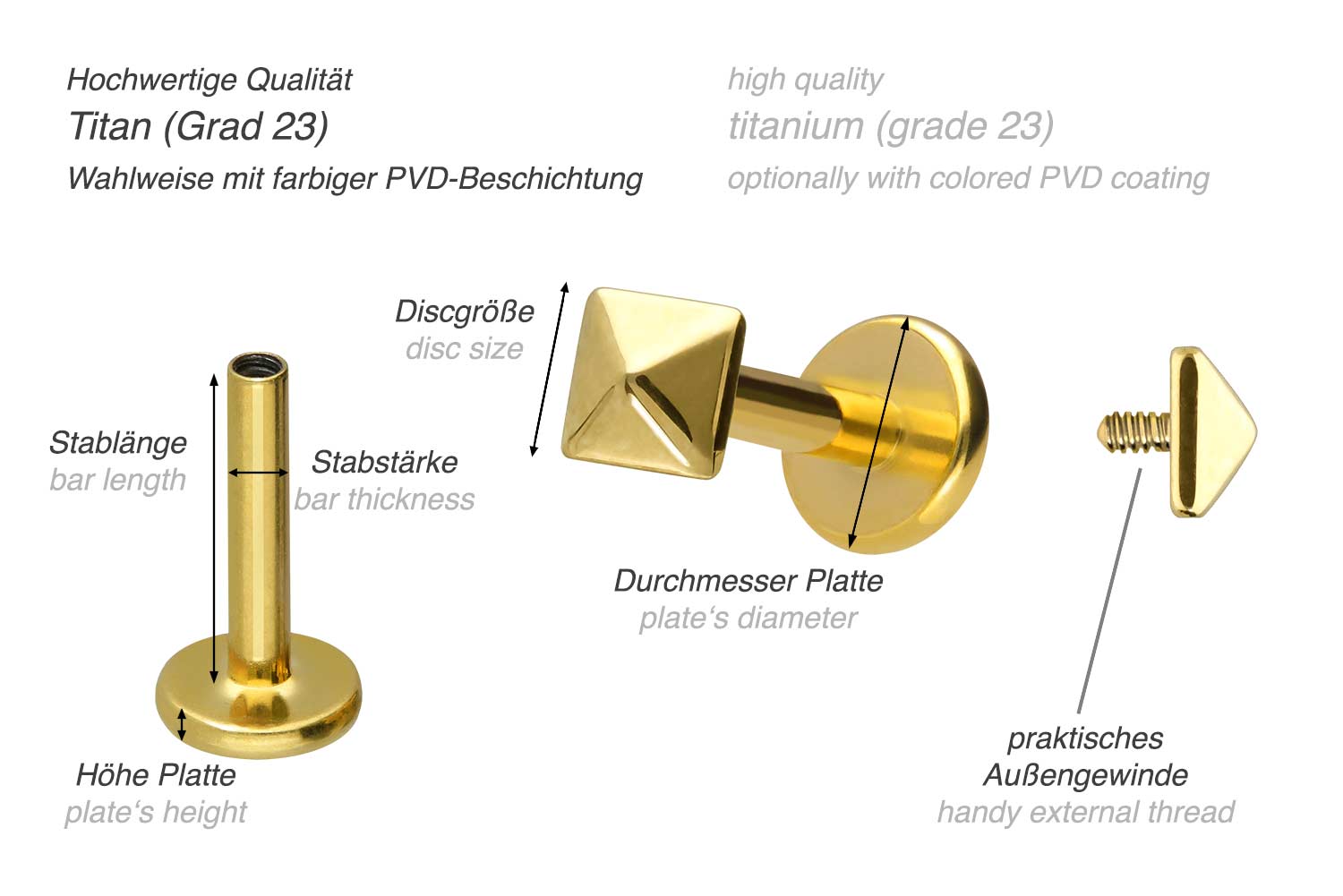 is supplied with a timelessly beautiful screw-in attachment with external thread in form of a pyramid, has a bar thickness of either 1.2