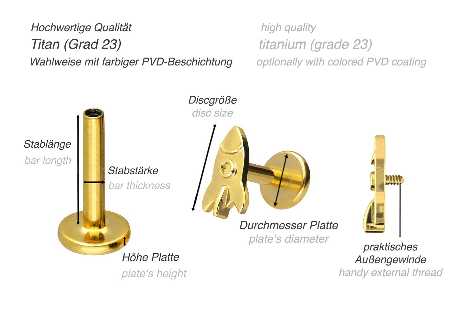 also guaranteed in the colored versions with PVD coating. The labret