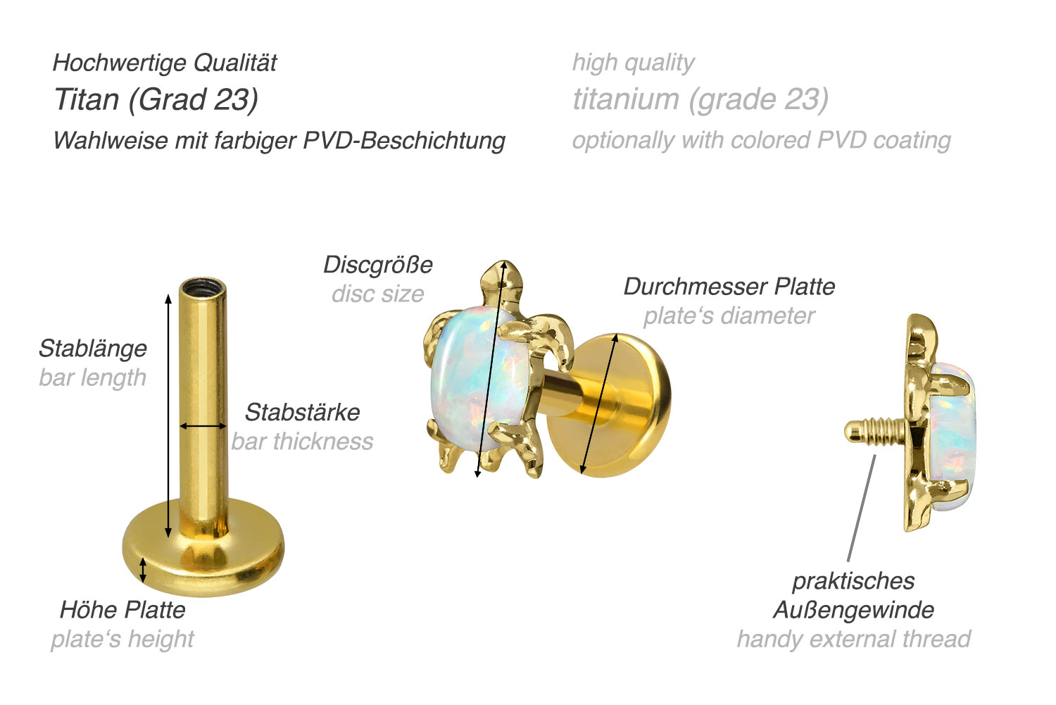 is supplied with a timelessly beautiful screw-in attachment with external thread in form of a turtle, has a bar thickness of either 1.2