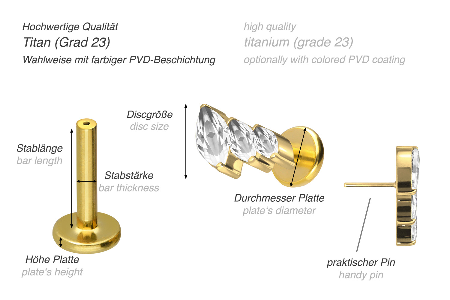 also guaranteed in the colored versions with PVD coating. The labret