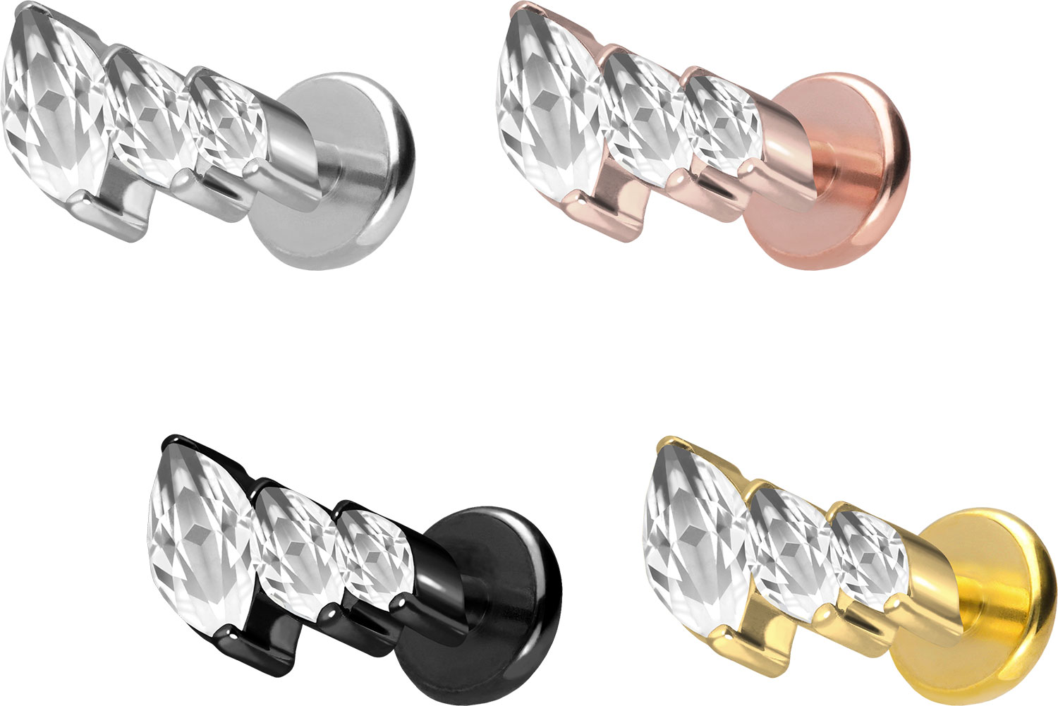 Titanium - Labret with Push Fit 3 set Crystal Drops