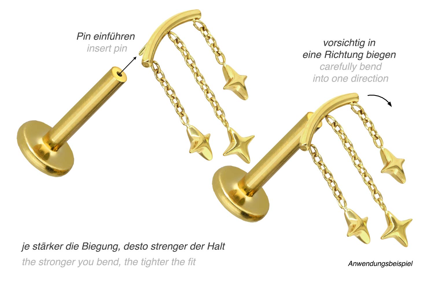 or 1.2 mm and is available with the bar lengths listed below. Due to the push fit technology used, the labret can be combined at will with all of our attachments with push pin.