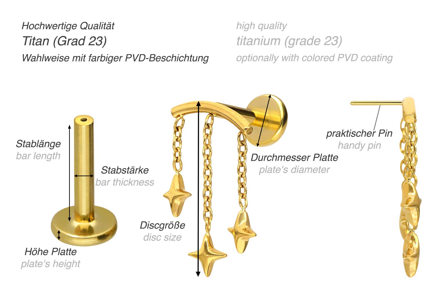 also guaranteed in the colored versions with PVD coating. The labret