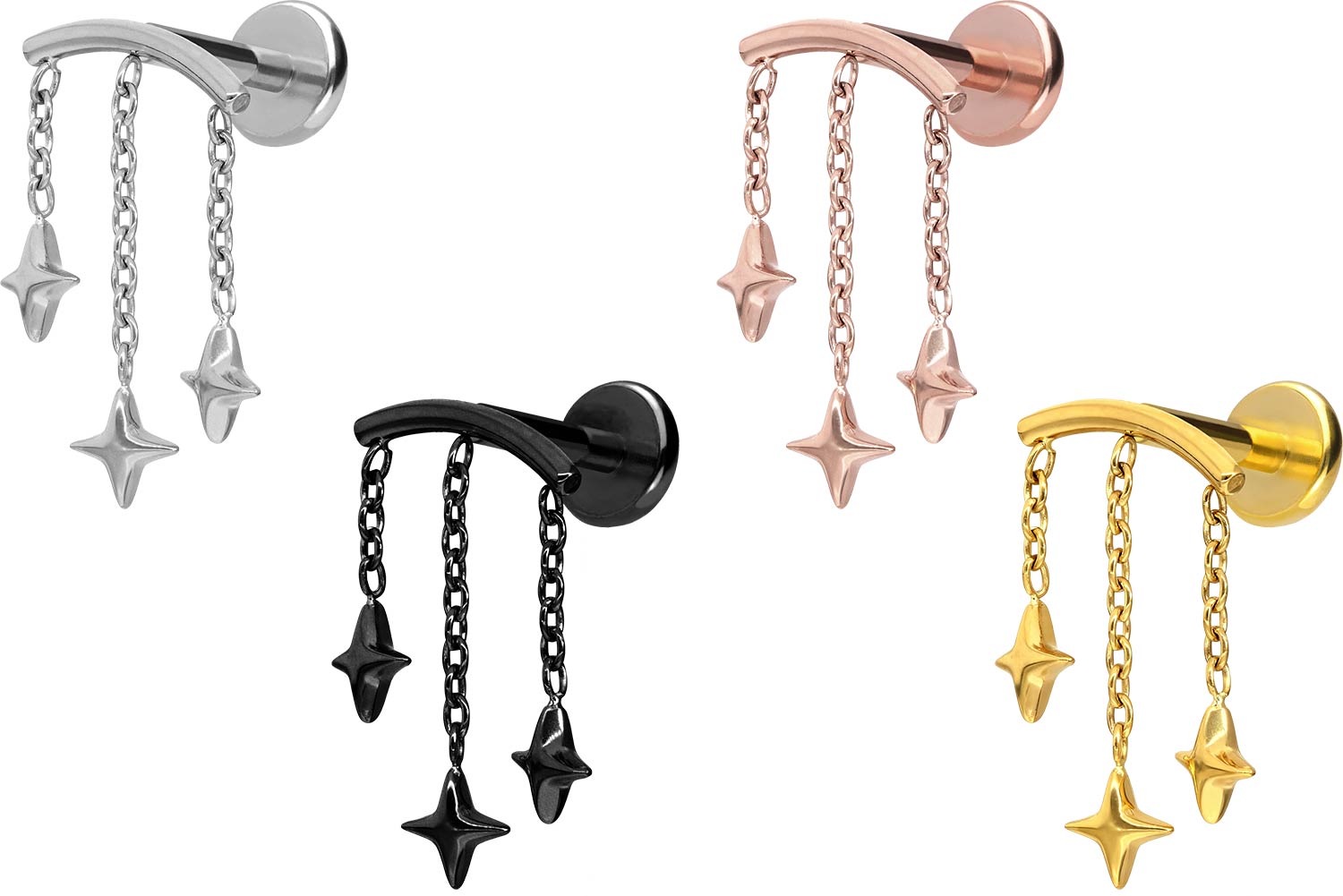 Titanium - Labret with Push Fit Arch + 3 Stars