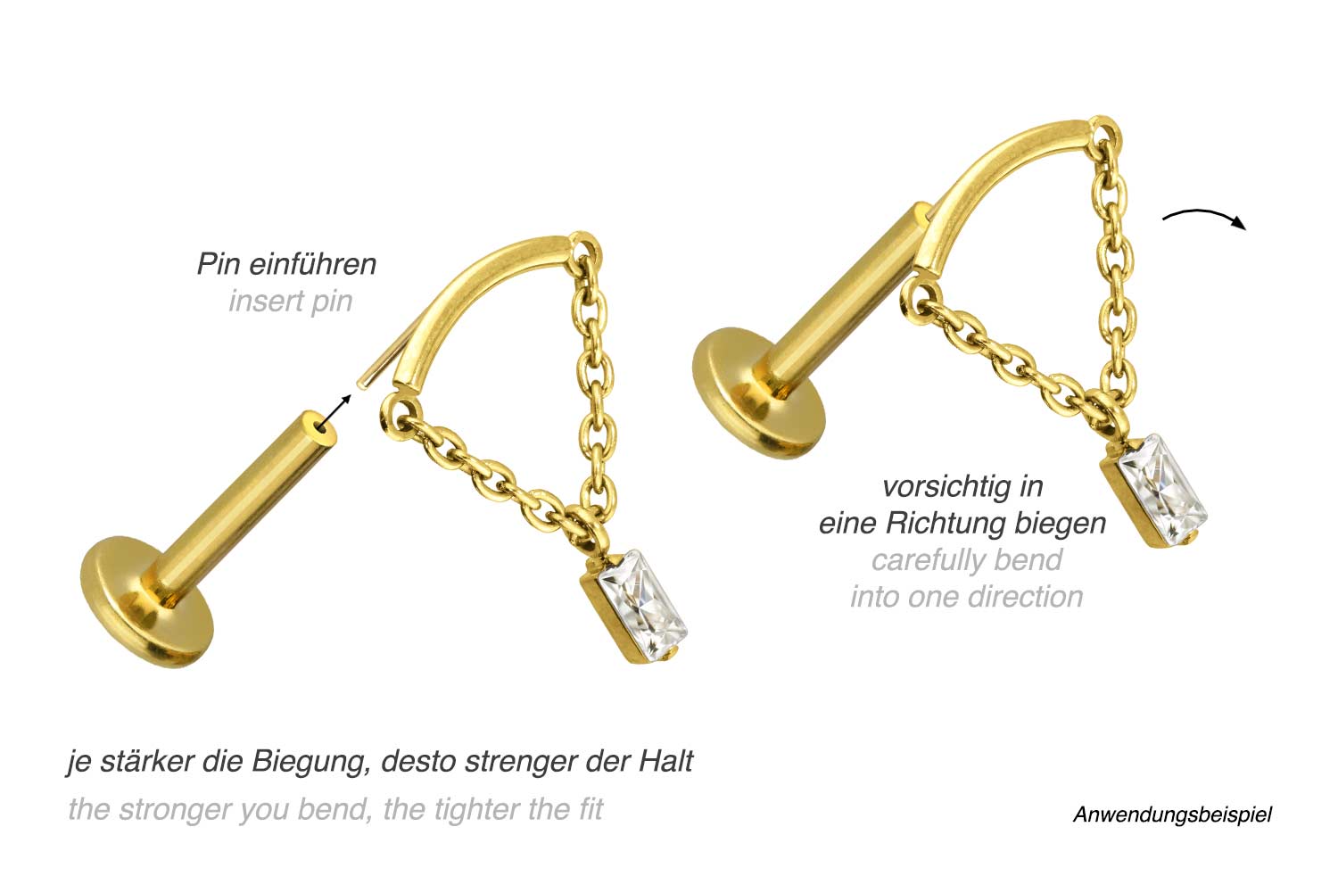 Titanium labret with push fit ARCH + CHAIN + CRYSTAL RECTANGLE