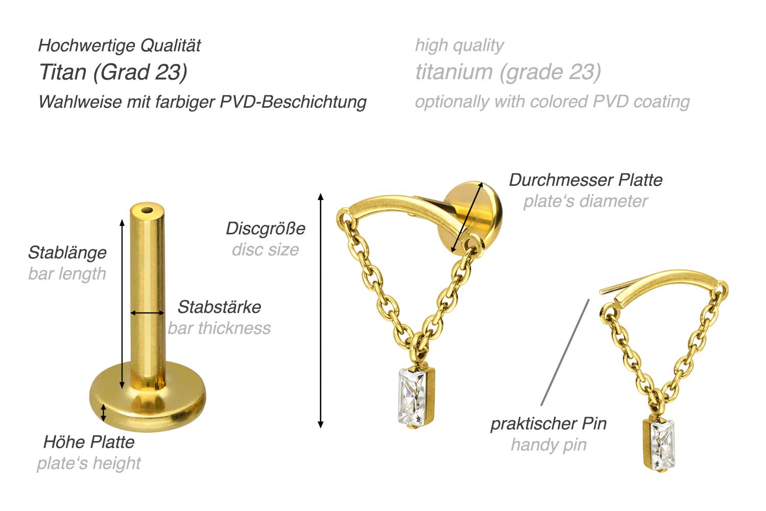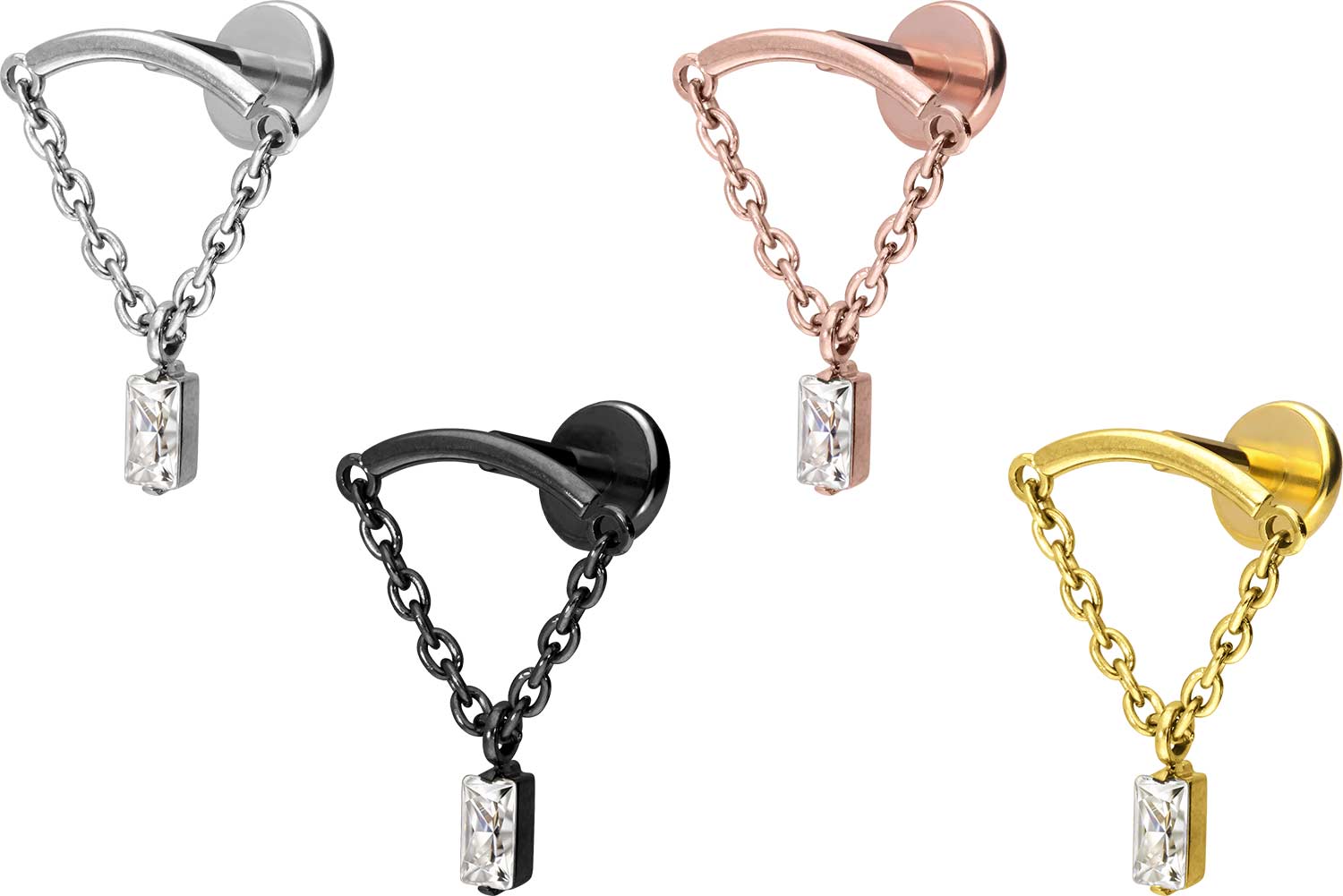 Titanium - Labret with Push Fit Arch + Chain + Crystal Rectangle
