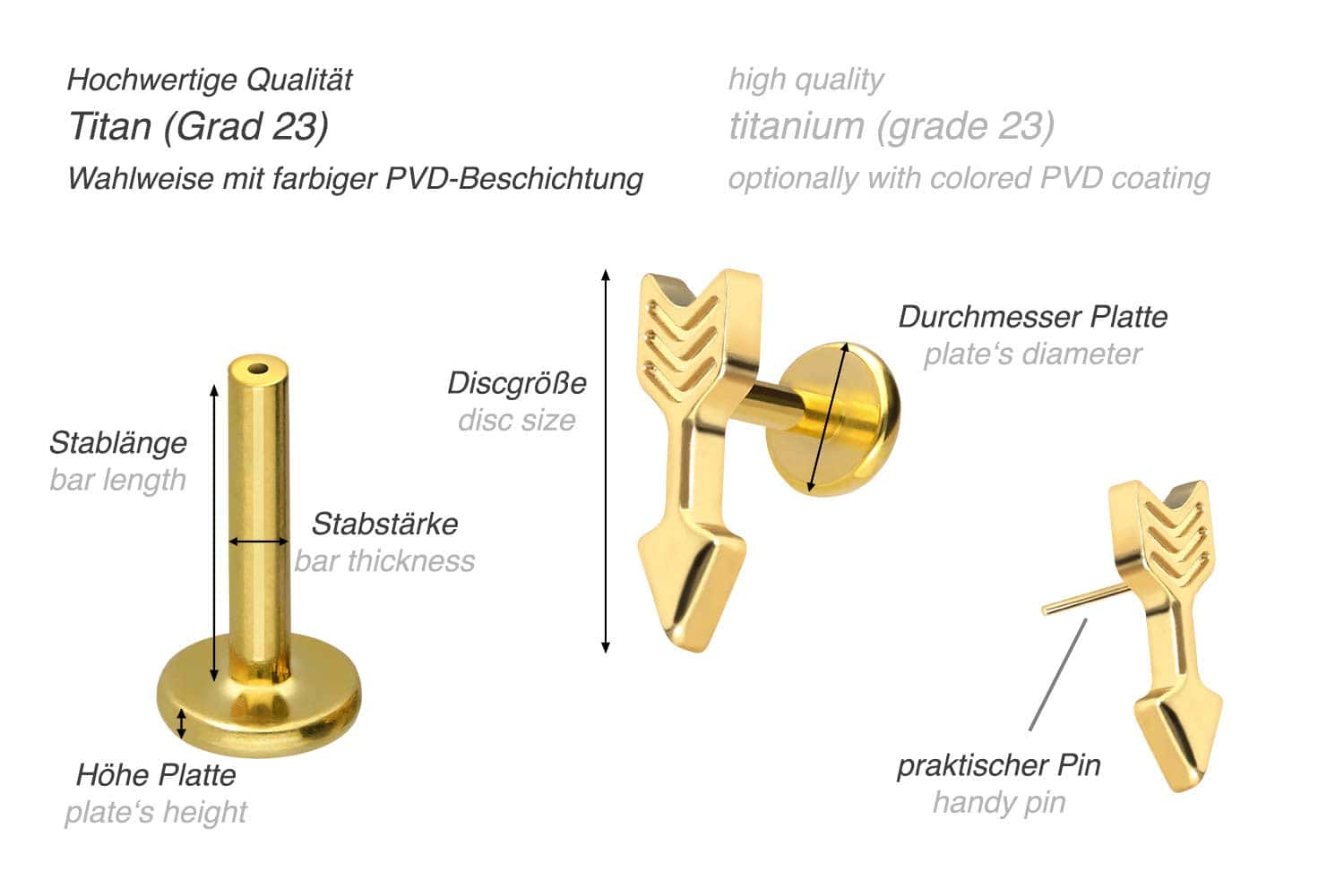 Titanium - Labret with Push Fit Arrow