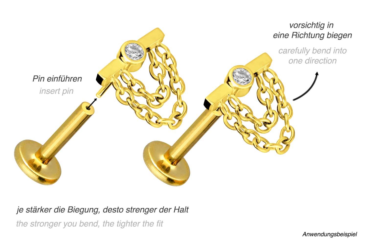 Titanium labret with push fit BAR + CRYSTAL + 2 CHAINS