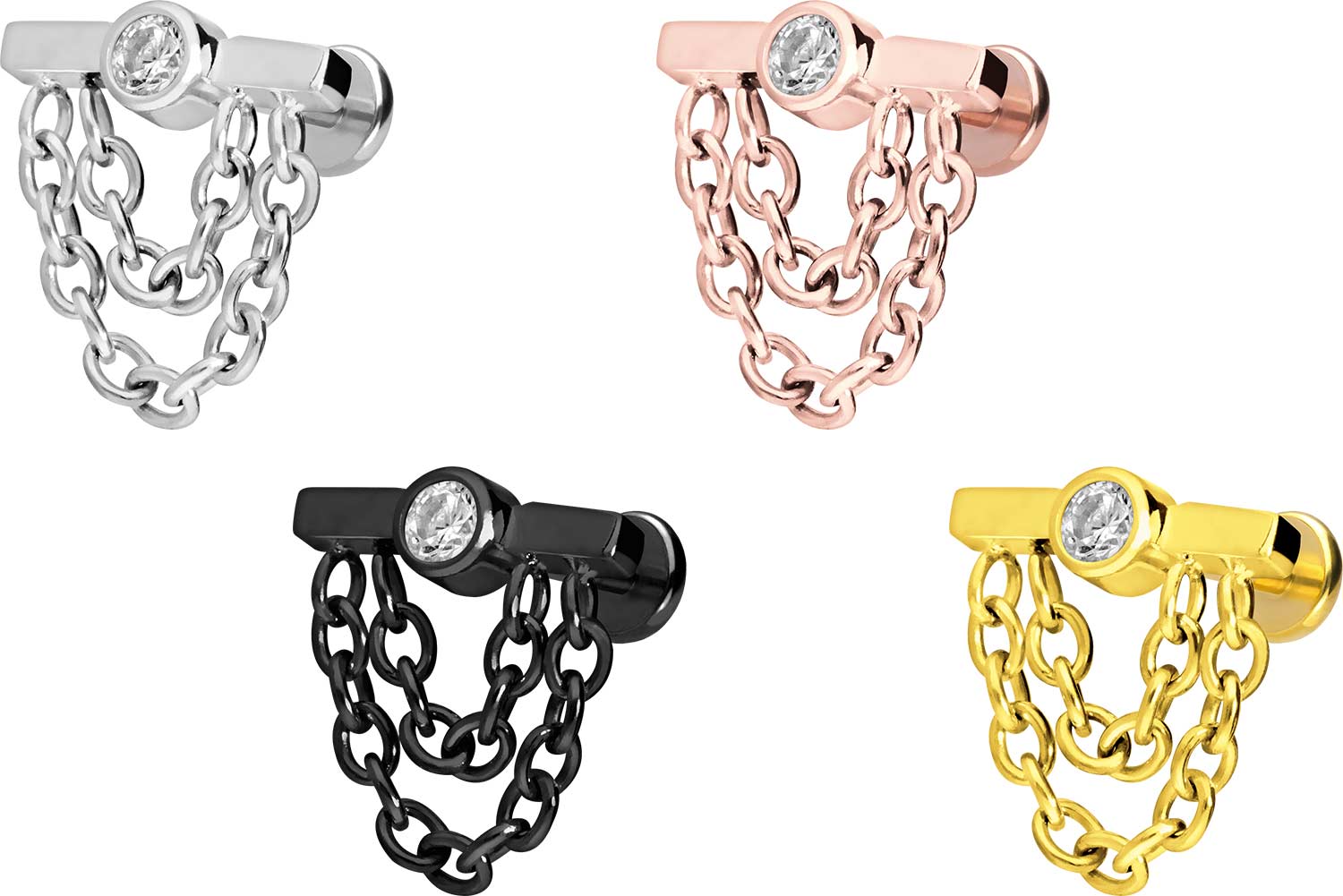 Titanium - Labret with Push Fit Bar + Crystal + 2 Chains