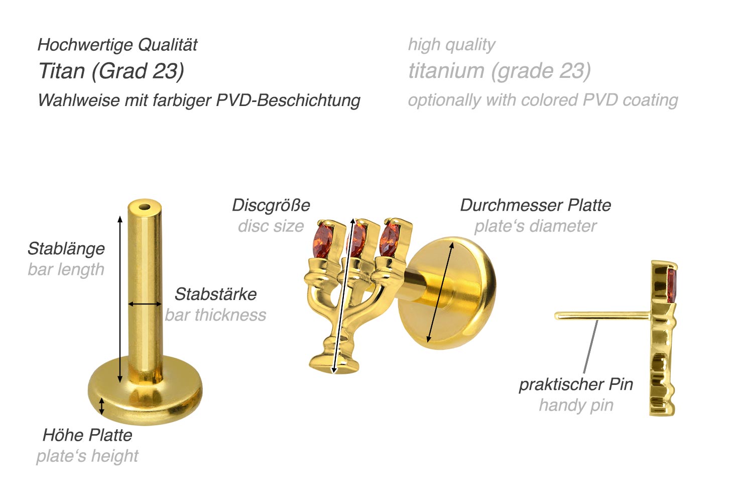 also guaranteed in the colored versions with PVD coating. The labret