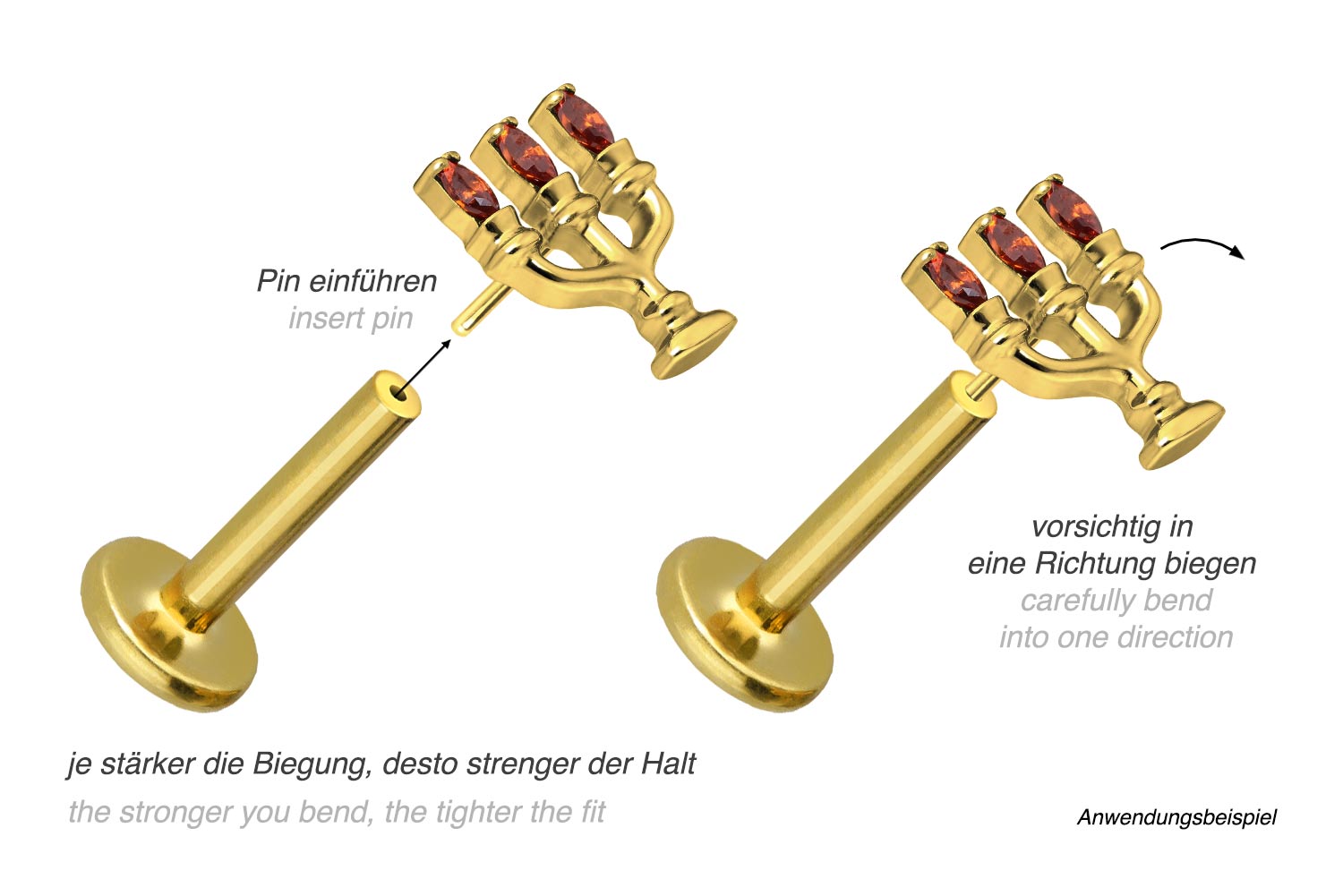or 1.2 mm and is available with the bar lengths listed below. Due to the push fit technology used, the labret can be combined at will with all of our attachments with push pin.