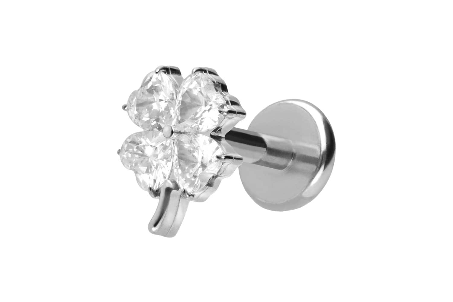 Titanium labret with push fit CRYSTAL CLOVER LEAF