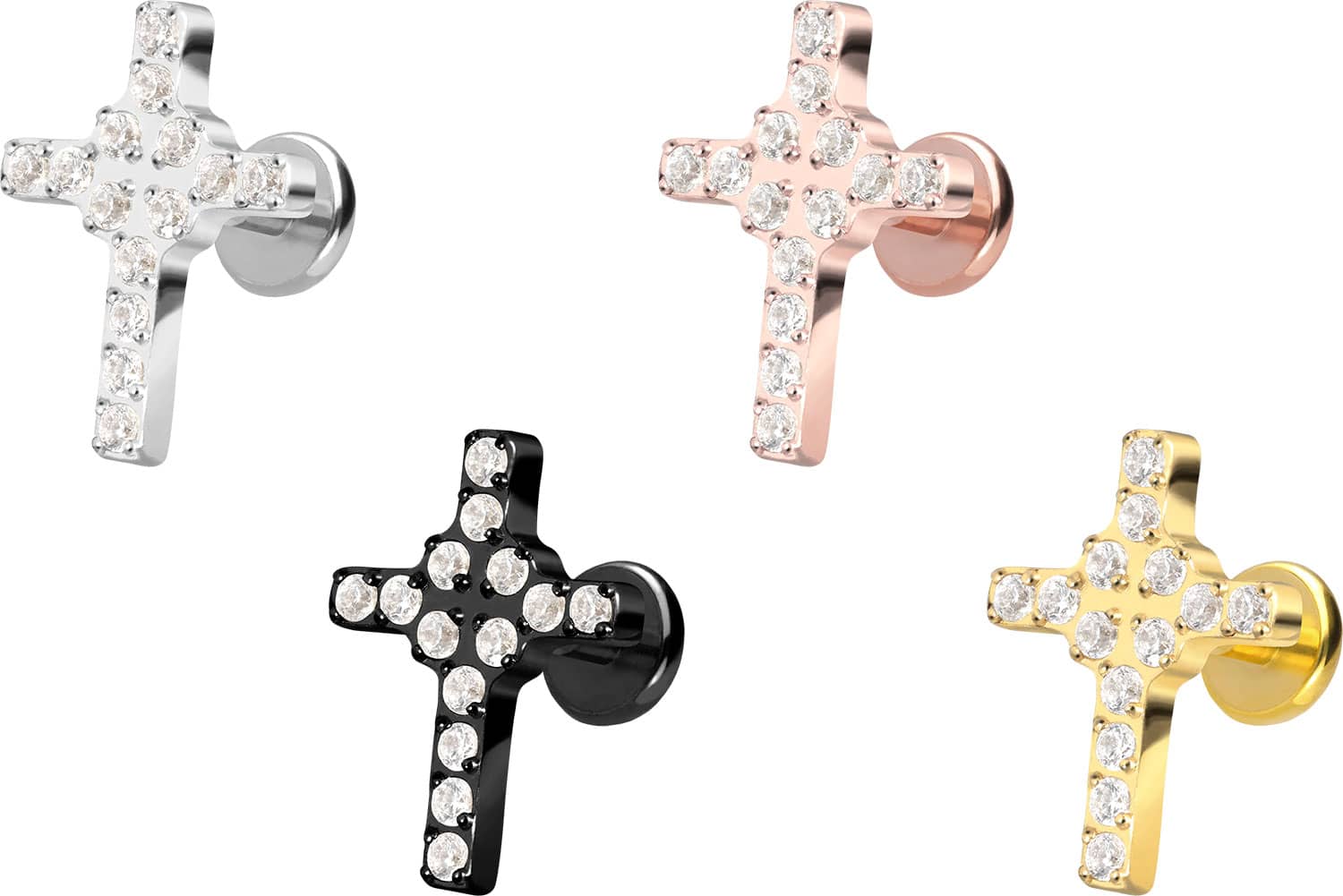Titanium - Labret with Push Fit Crystal Cross