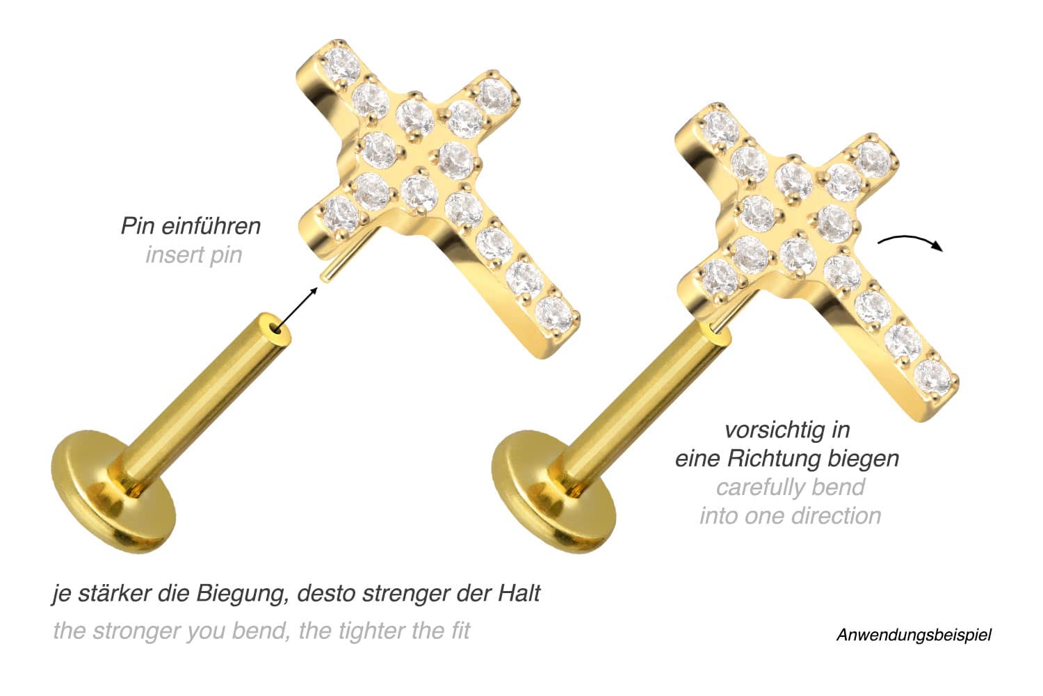 or 1.2 mm and is available with the bar lengths listed below. Due to the push fit technology used, the labret can be combined at will with all of our attachments with push pin.