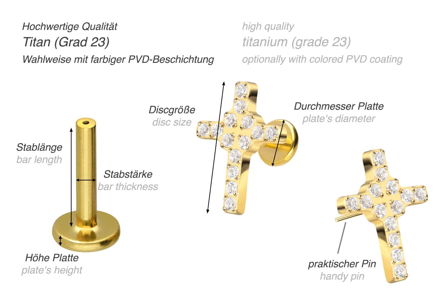 also guaranteed in the colored versions with PVD coating. The labret