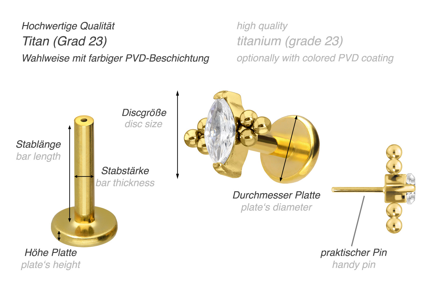 also guaranteed in the colored versions with PVD coating. The labret