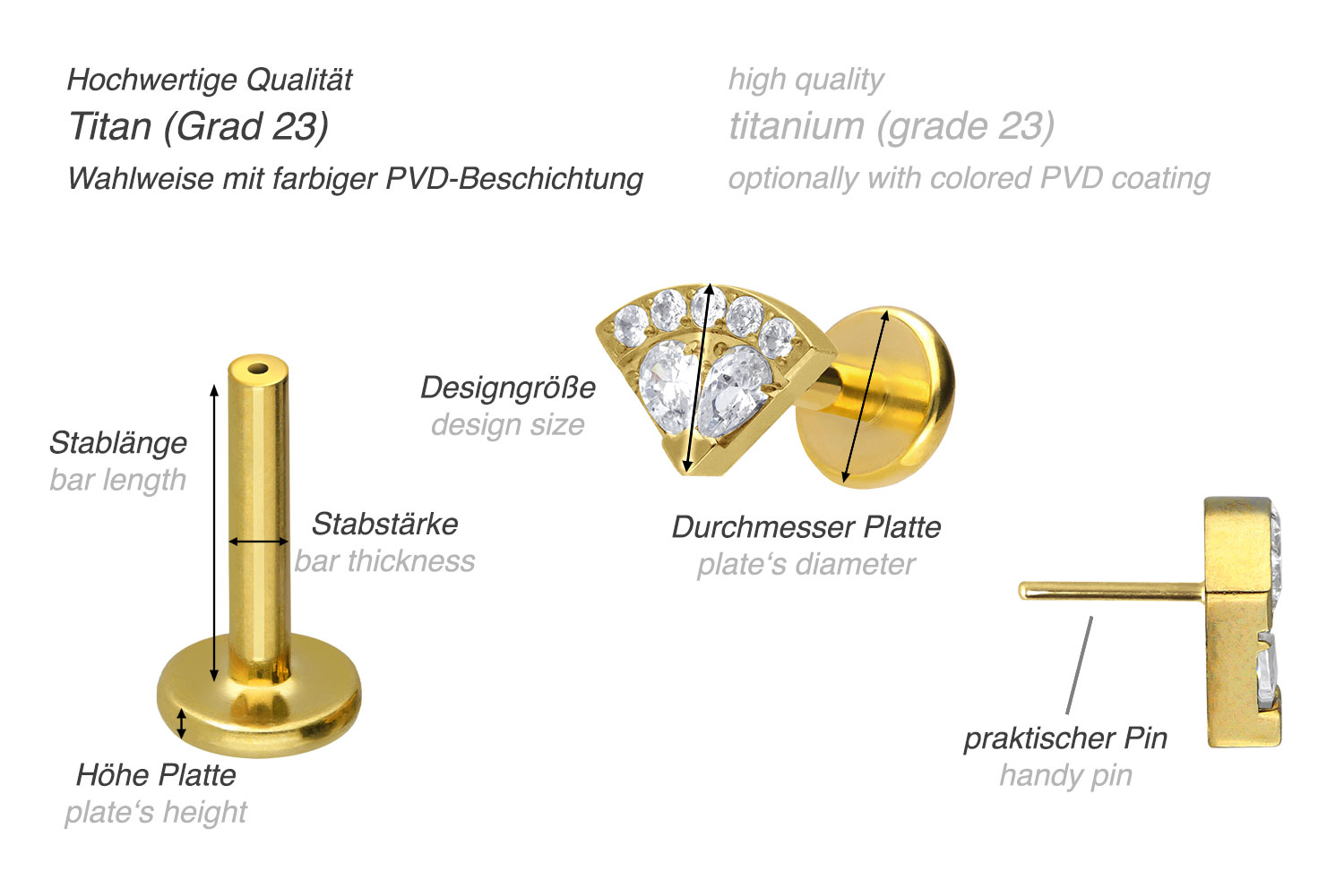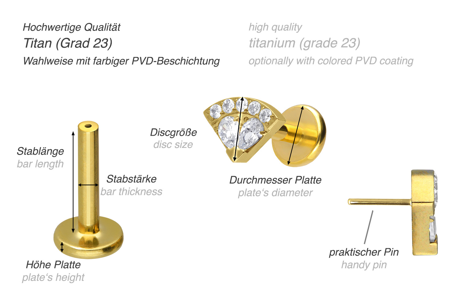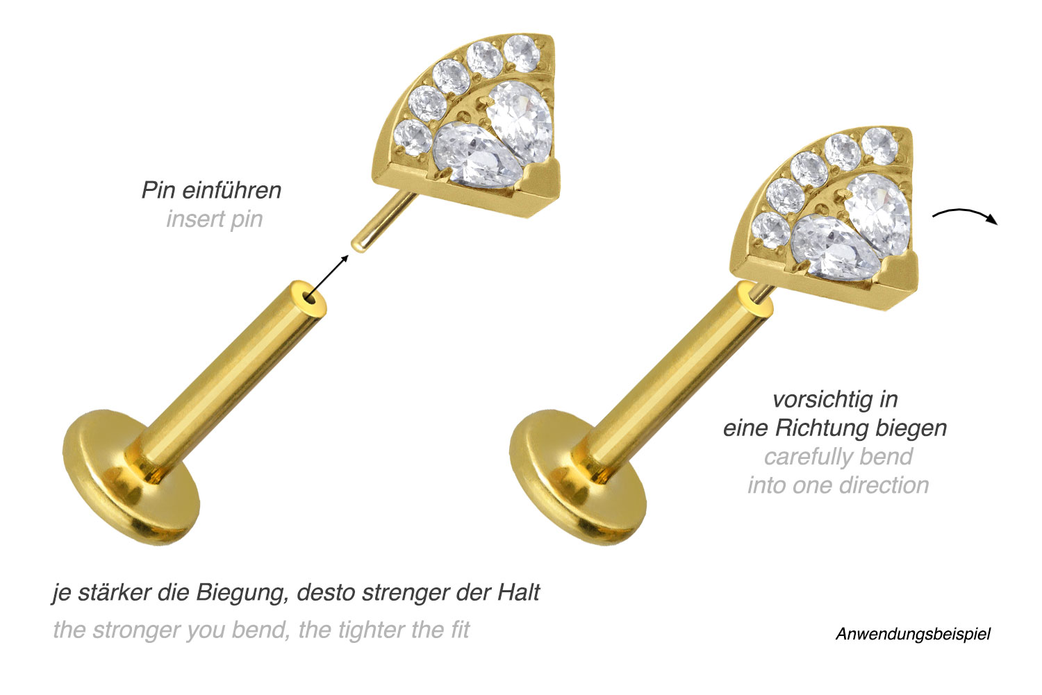 or 1.2 mm and is available with the bar lengths listed below. Due to the push fit technology used, the labret can be combined at will with all of our attachments with push pin.