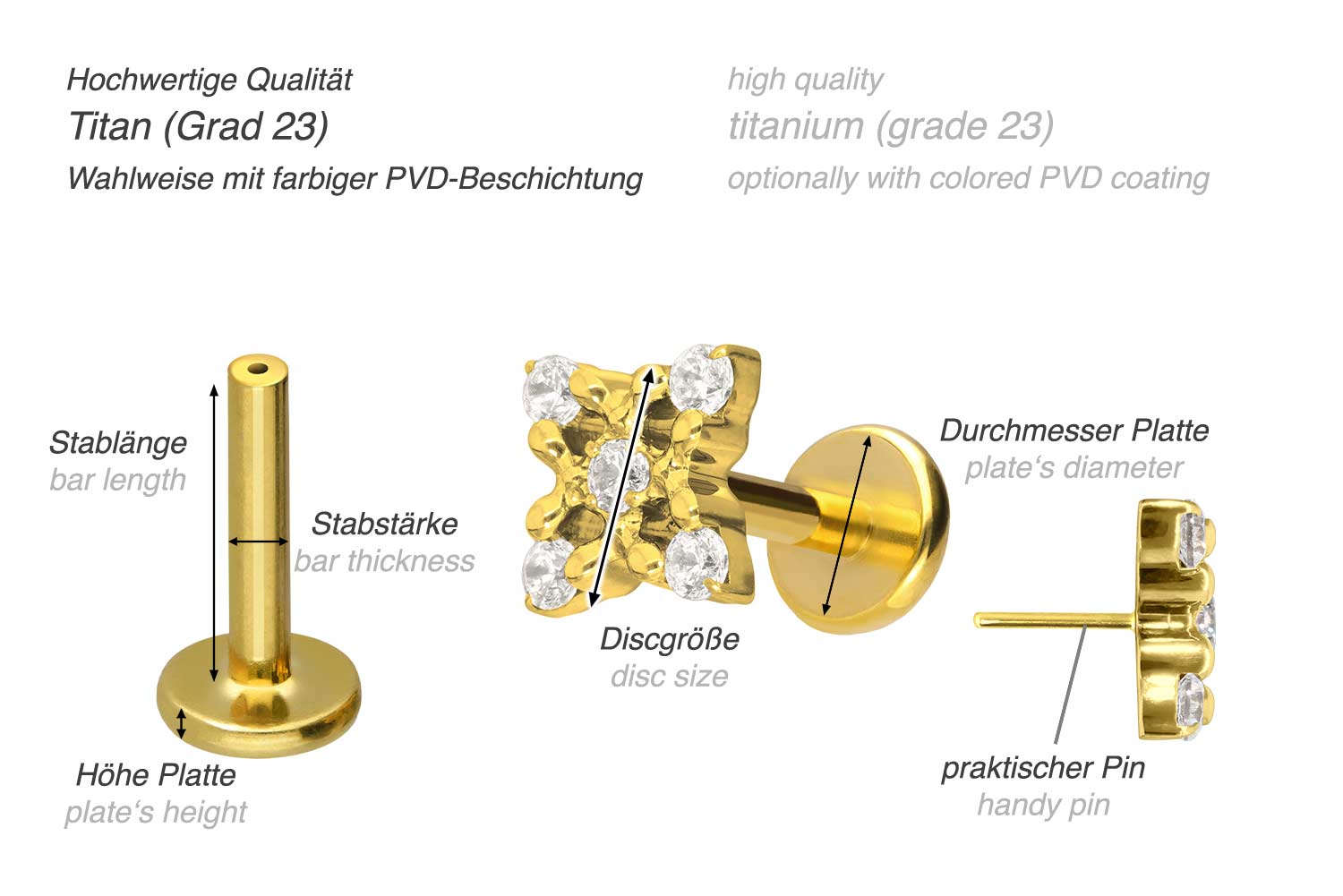 also guaranteed in the colored versions with PVD coating. The labret