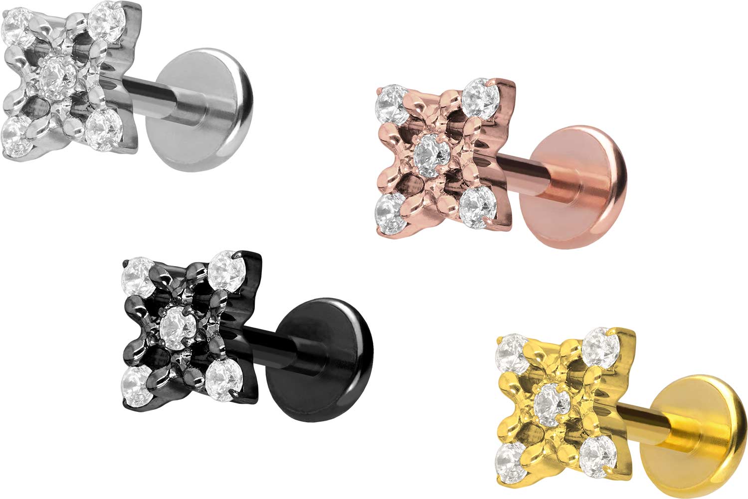 Titanium - Labret with Push Fit Crystal Flower
