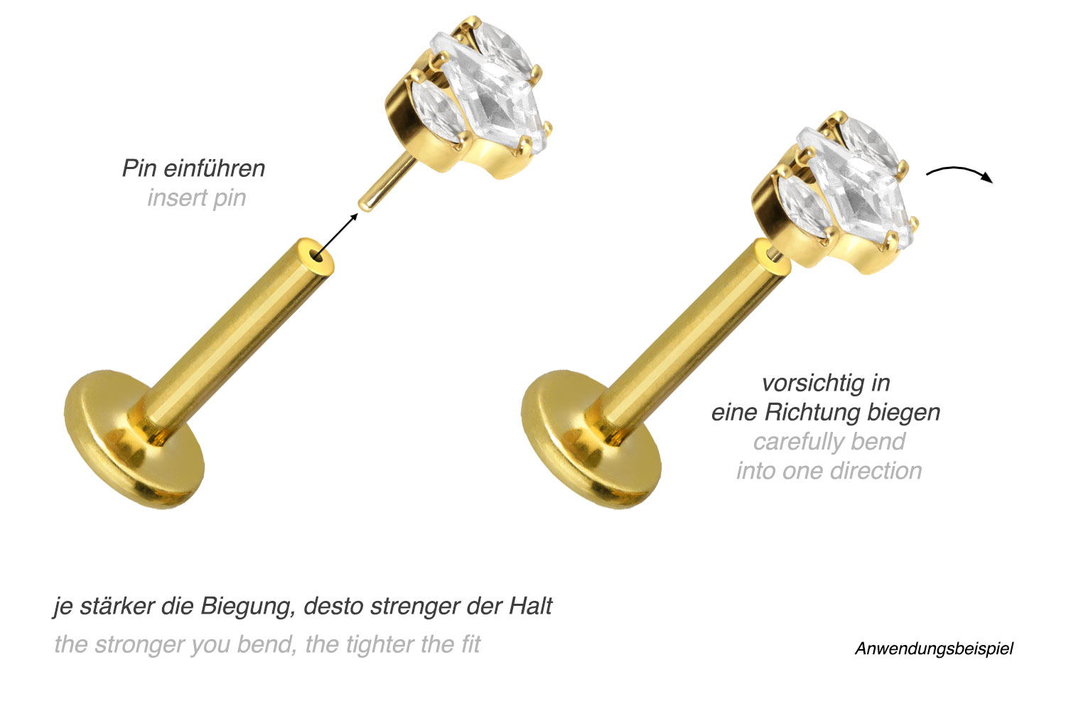 or 1.2 mm and is available with the bar lengths listed below. Due to the push fit technology used, the labret can be combined at will with all of our attachments with push pin.