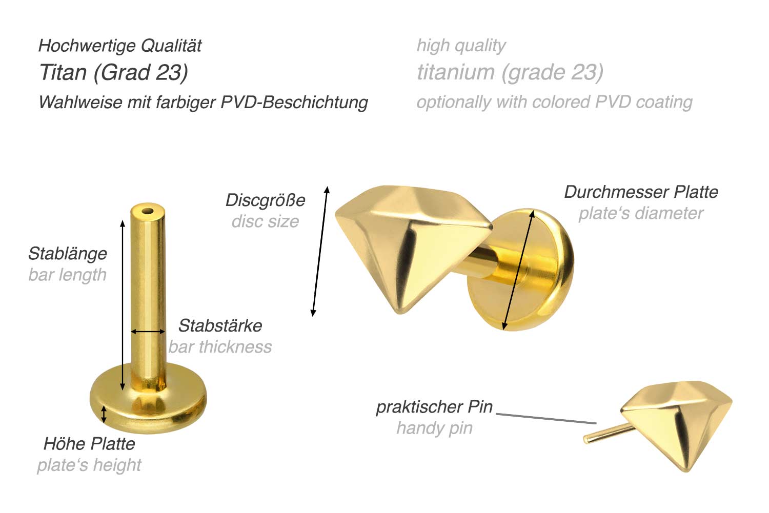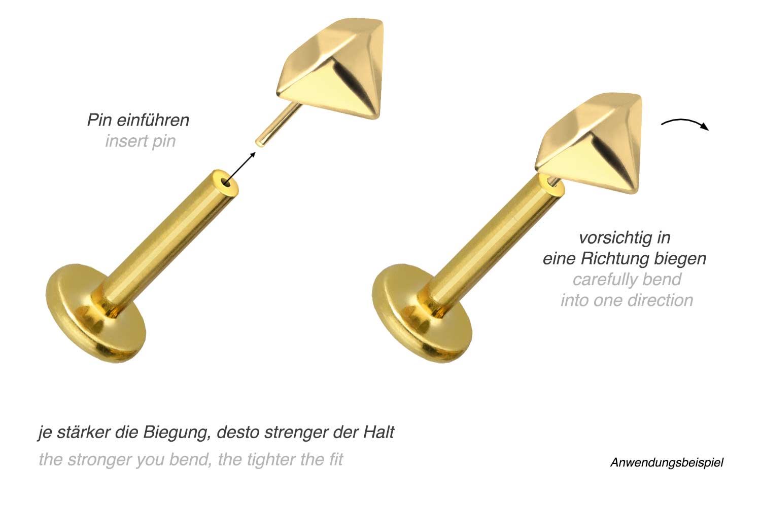 or 1.2 mm and is available with the bar lengths listed below. Due to the push fit technology used, the labret can be combined at will with all of our attachments with push pin.