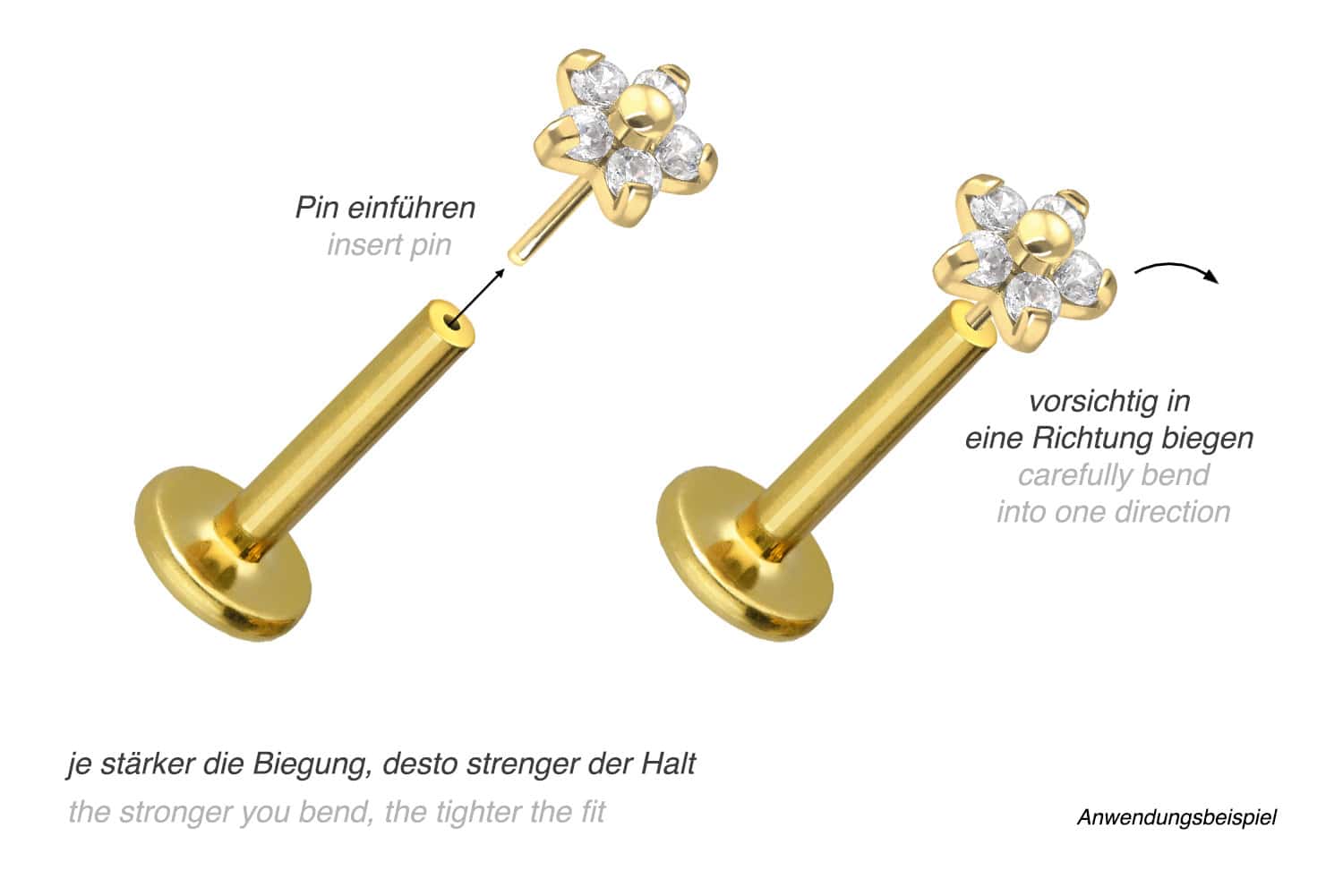 or 1.2 mm and is available with the bar lengths listed below. Due to the push fit technology used, the labret can be combined at will with all of our attachments with push pin.