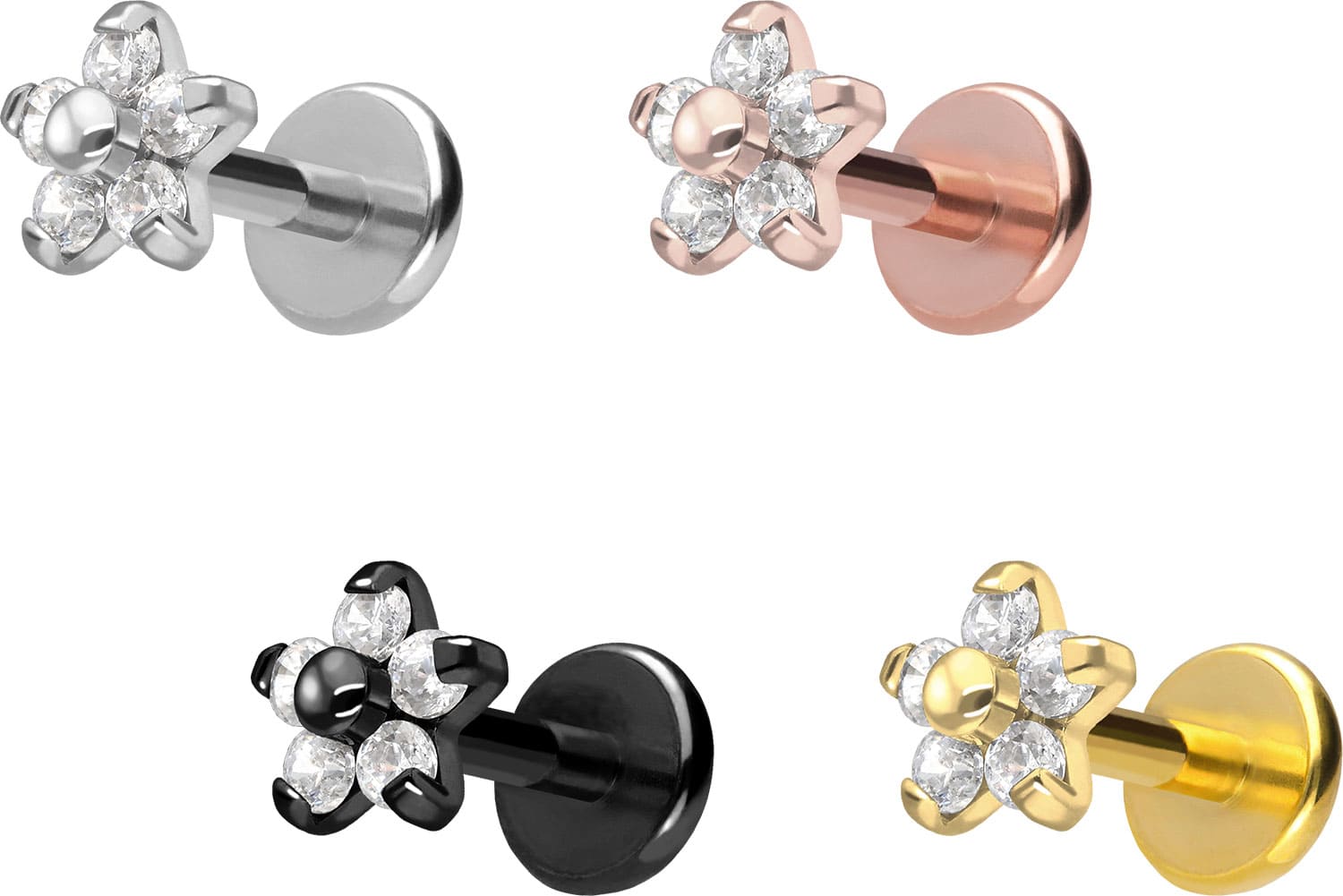 Titanium - Labret with Push Fit FLower with 5 Crystals
