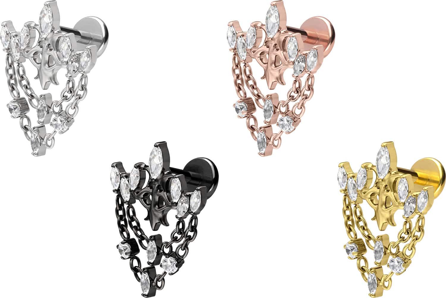 Titanium - Labret with Push Fit gothic Crown + Chains