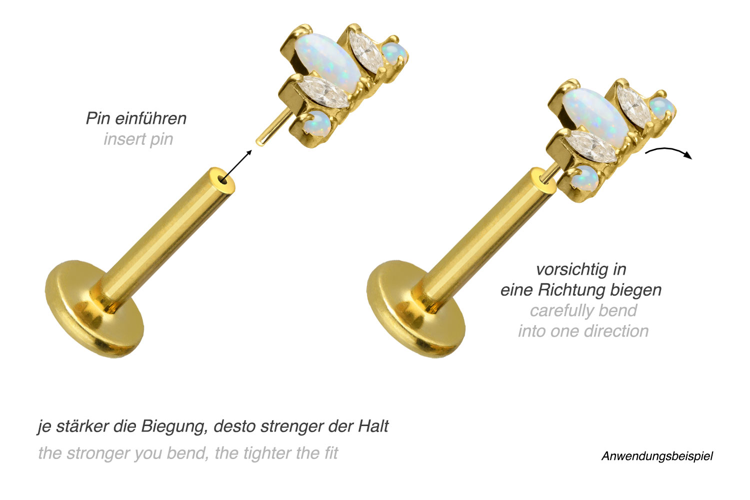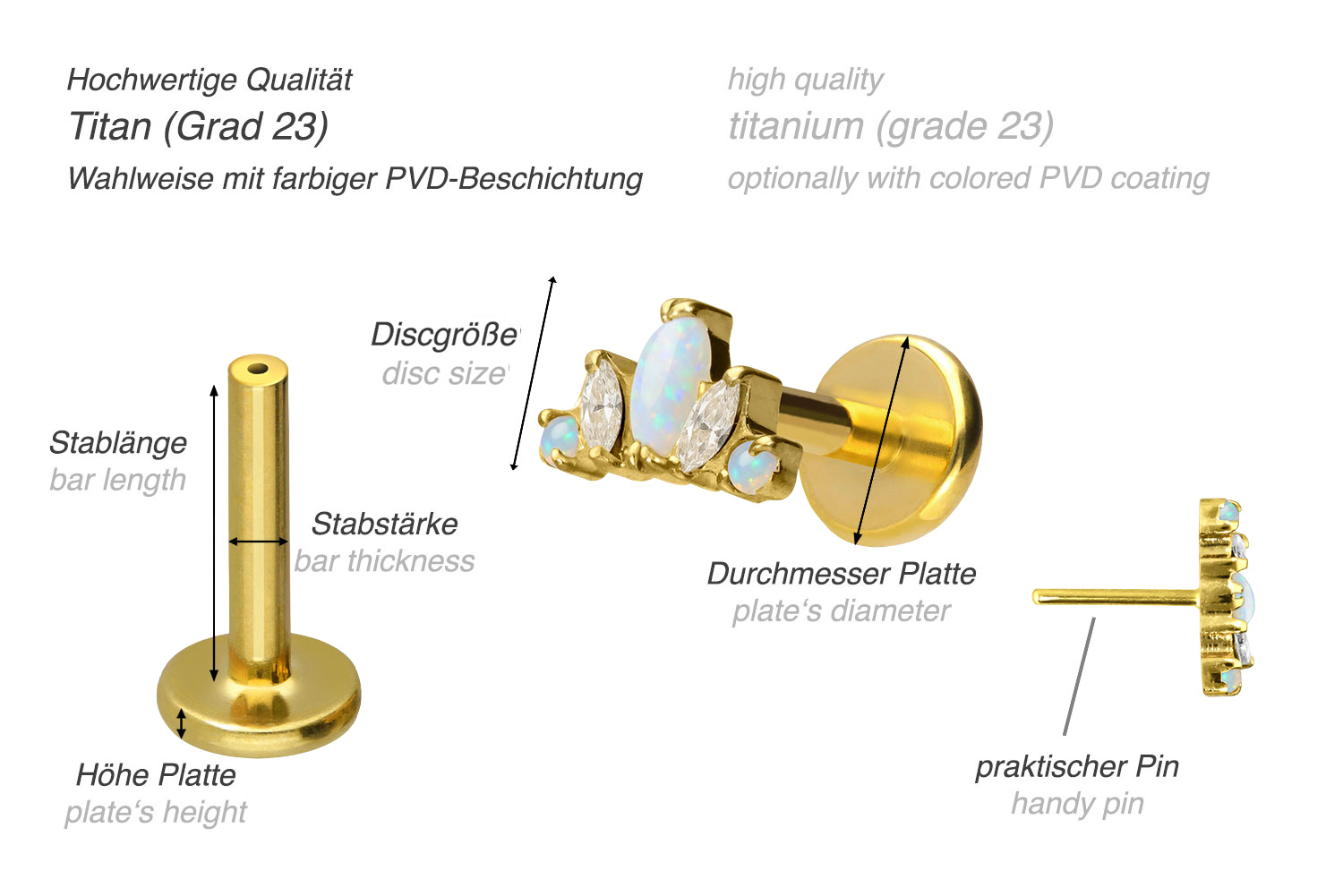 or 1.2 mm and is available with the bar lengths listed below. Due to the push fit technology used, the labret can be combined at will with all of our attachments with push pin.