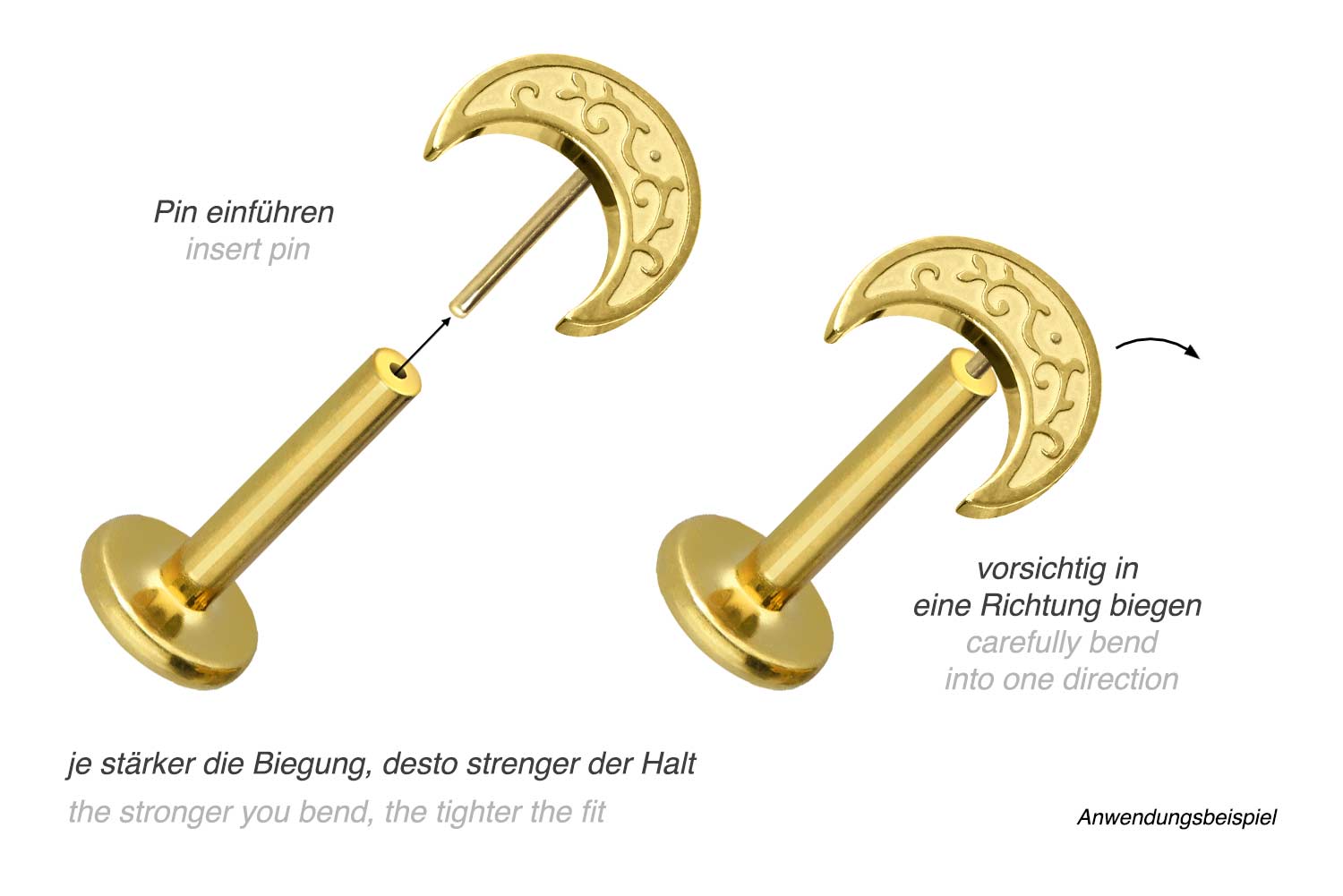 or 1.2 mm and is available with the bar lengths listed below. Due to the push fit technology used, the labret can be combined at will with all of our attachments with push pin.