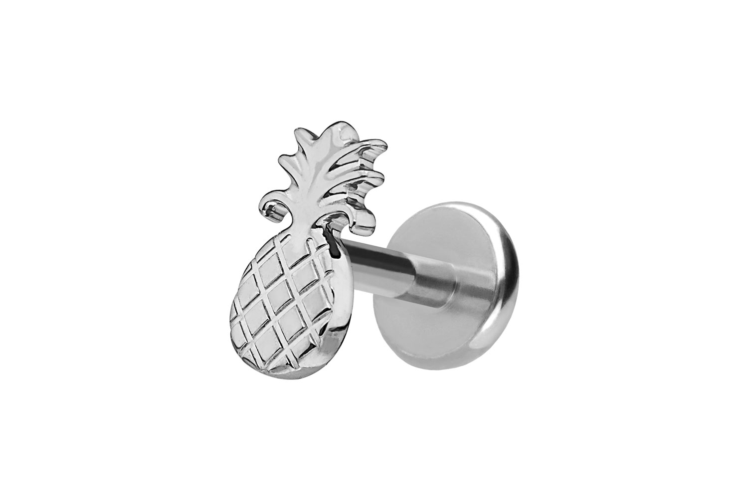 is supplied with a timelessly beautiful attachment with push pin in form of a pineapple, has a bar thickness of either 1