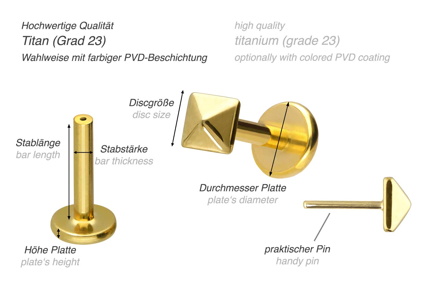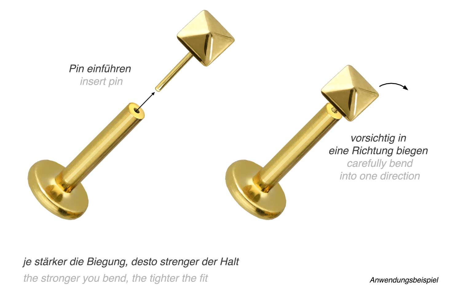 or 1.2 mm and is available with the bar lengths listed below. Due to the push fit technology used, the labret can be combined at will with all of our attachments with push pin.