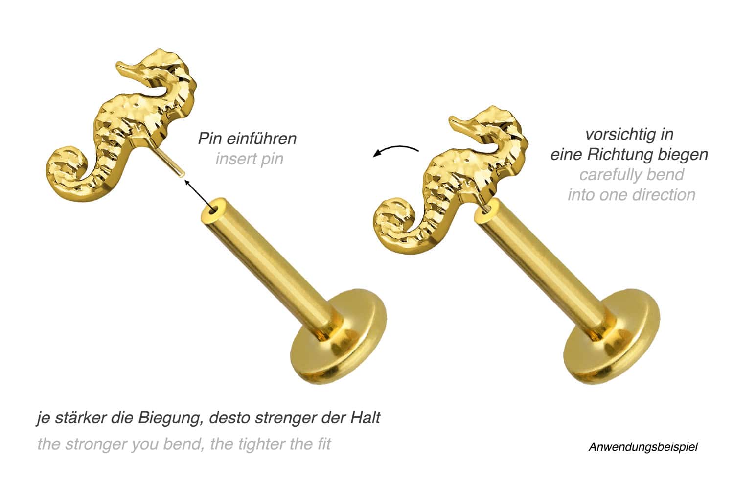 or 1.2 mm and is available with the bar lengths listed below. Due to the push fit technology used, the labret can be combined at will with all of our attachments with push pin.