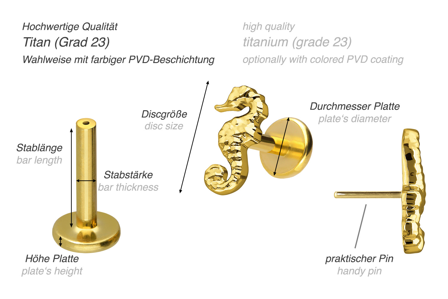 also guaranteed in the colored versions with PVD coating. The labret