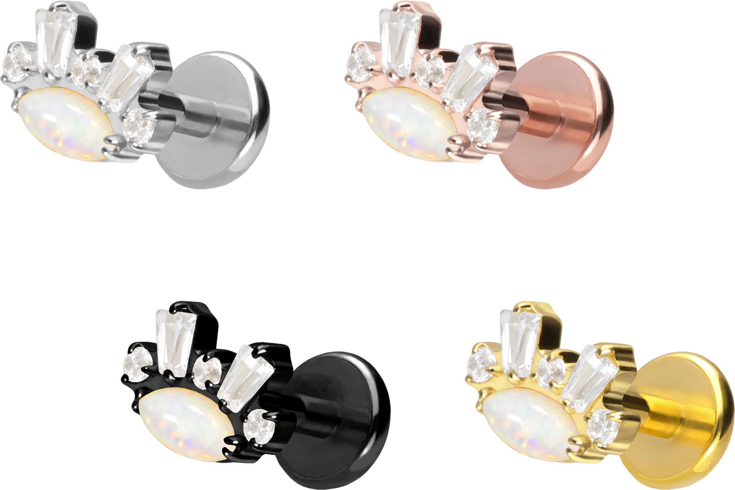 Titanium - Labret with Push Fit Synthetic Opal + Crystals