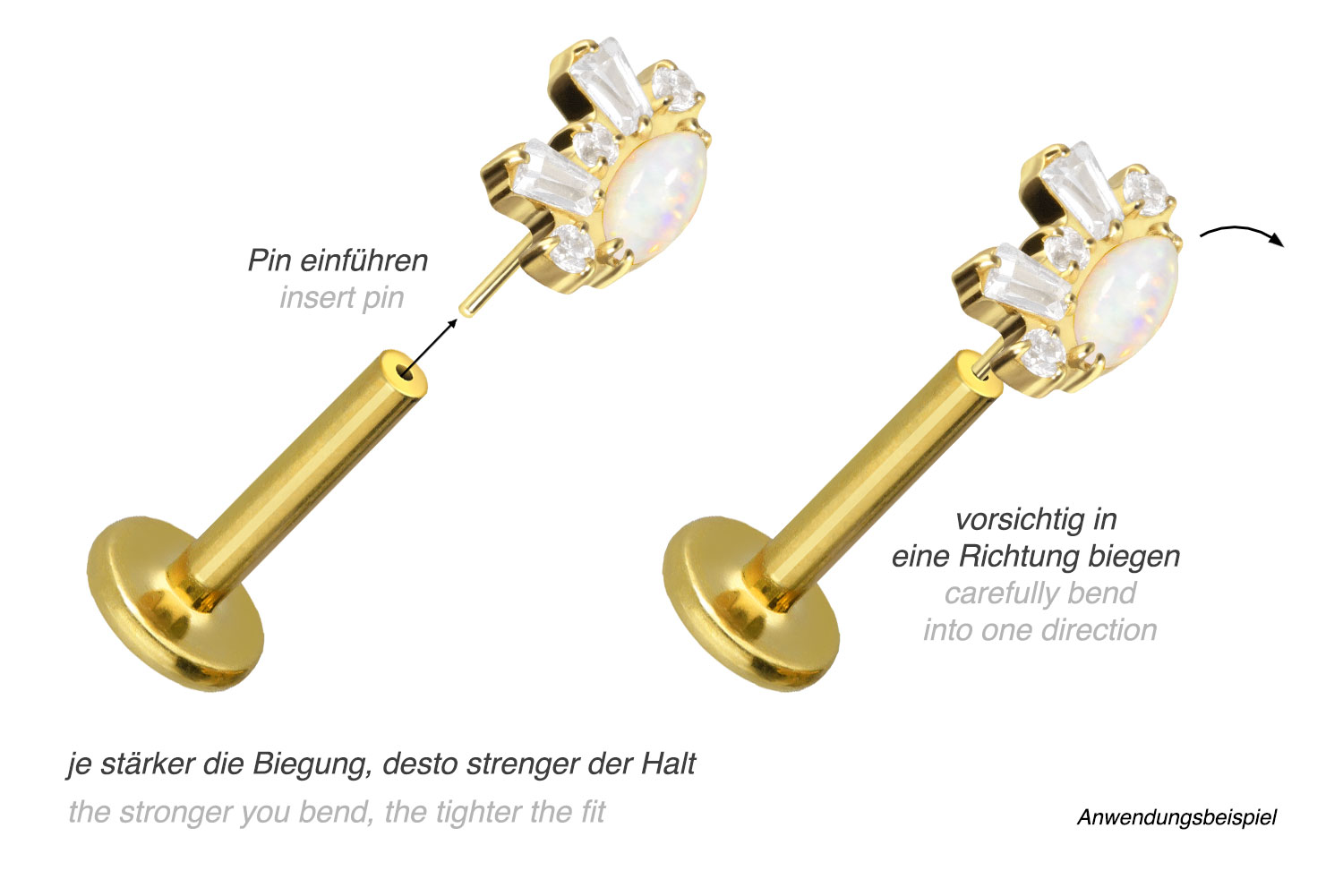 or 1.2 mm and is available with the bar lengths listed below. Due to the push fit technology used, the labret can be combined at will with all of our attachments with push pin.