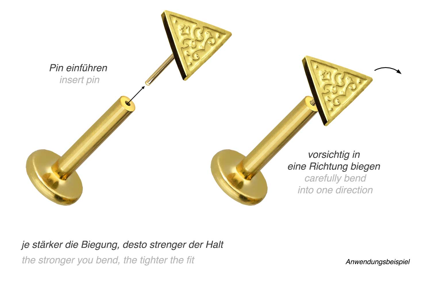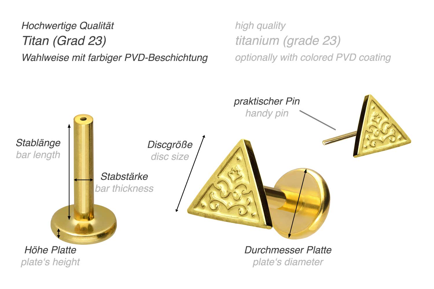 Titanium labret with push fit TRIANGLE