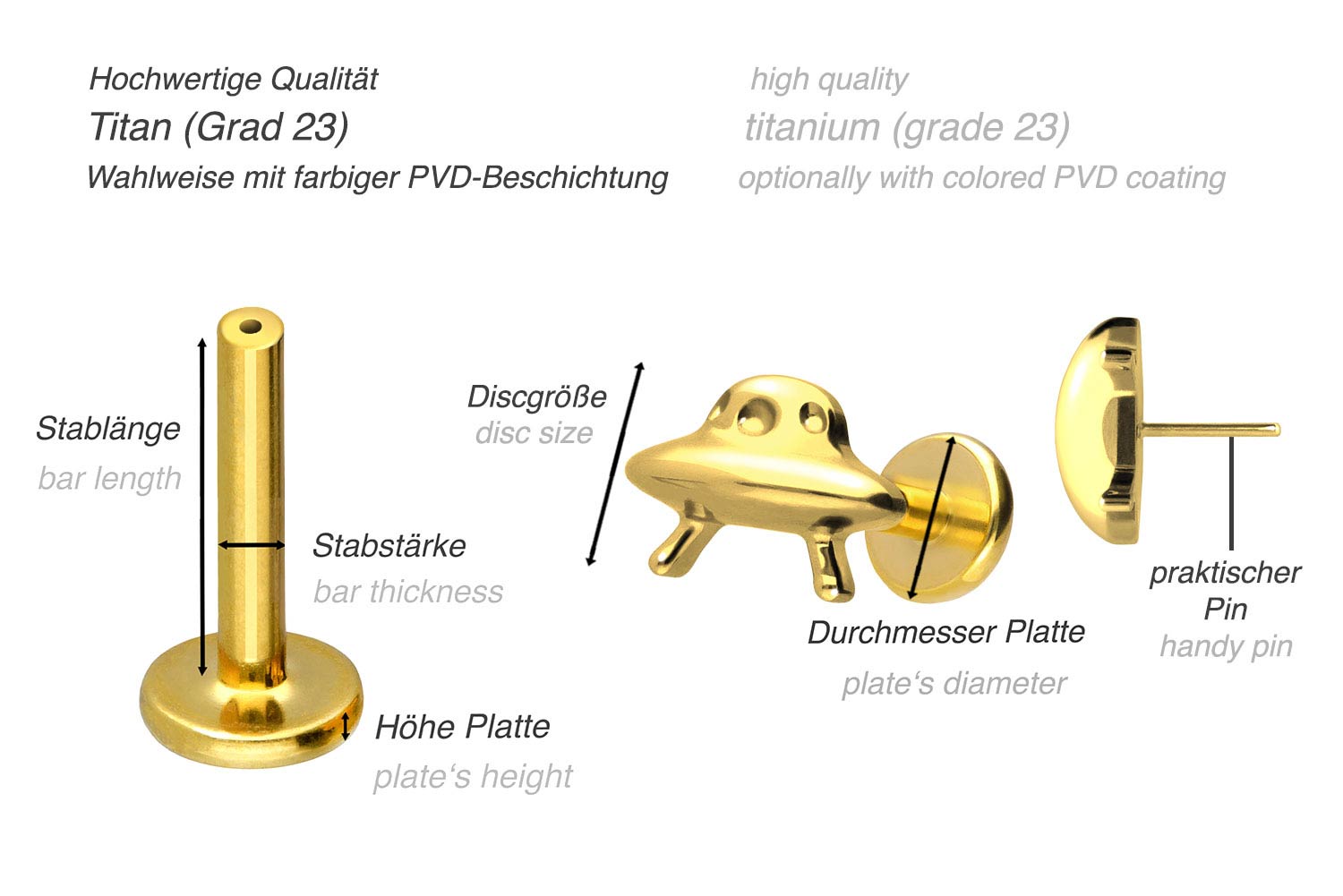 also guaranteed in the colored versions with PVD coating. The labret