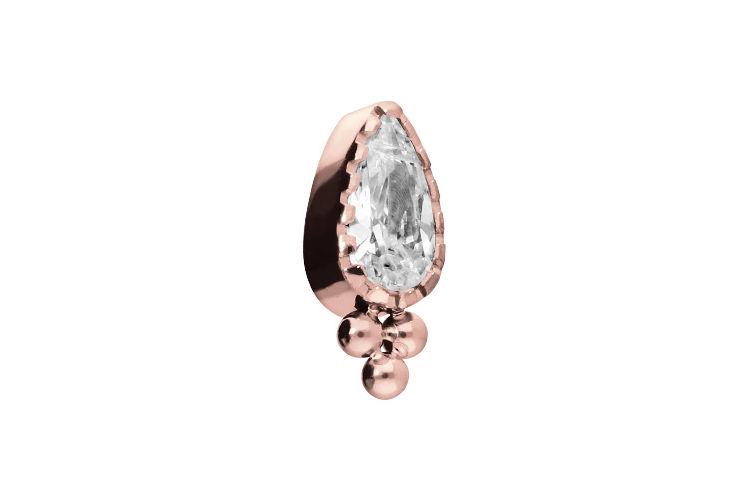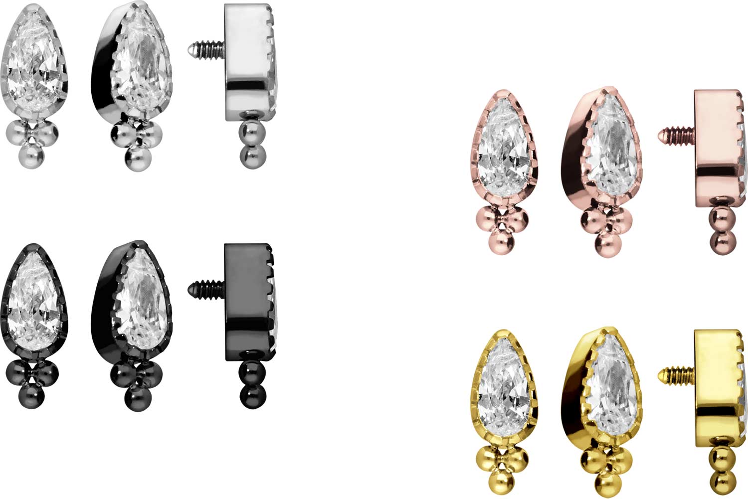 This timelessly beautiful screw-in attachment in the form of a sparkling crystal drop, which is decorated with several balls, was specially developed for our internal thread piercings. Its setting is made of high quality titanium, which